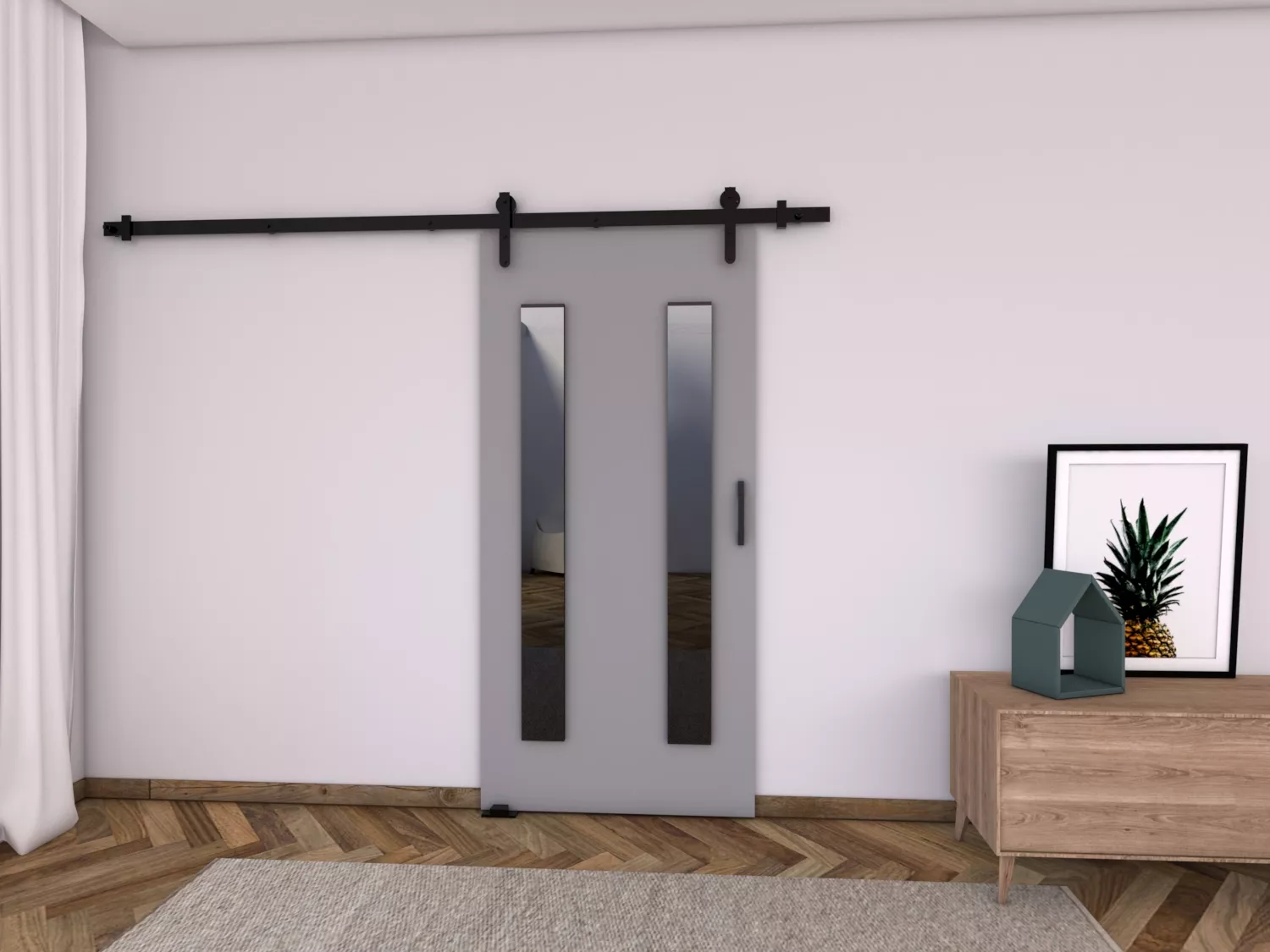 Posuvné dveře v loftovém stylu BUSHLAND 8 zajišťují soukromí bez časově náročné instalace. Dveře zdobí lepené dekorativní prvky z černého skla. Použitý posuvný systém zaručuje tichý chod a bezporuchový provoz po mnoho let.