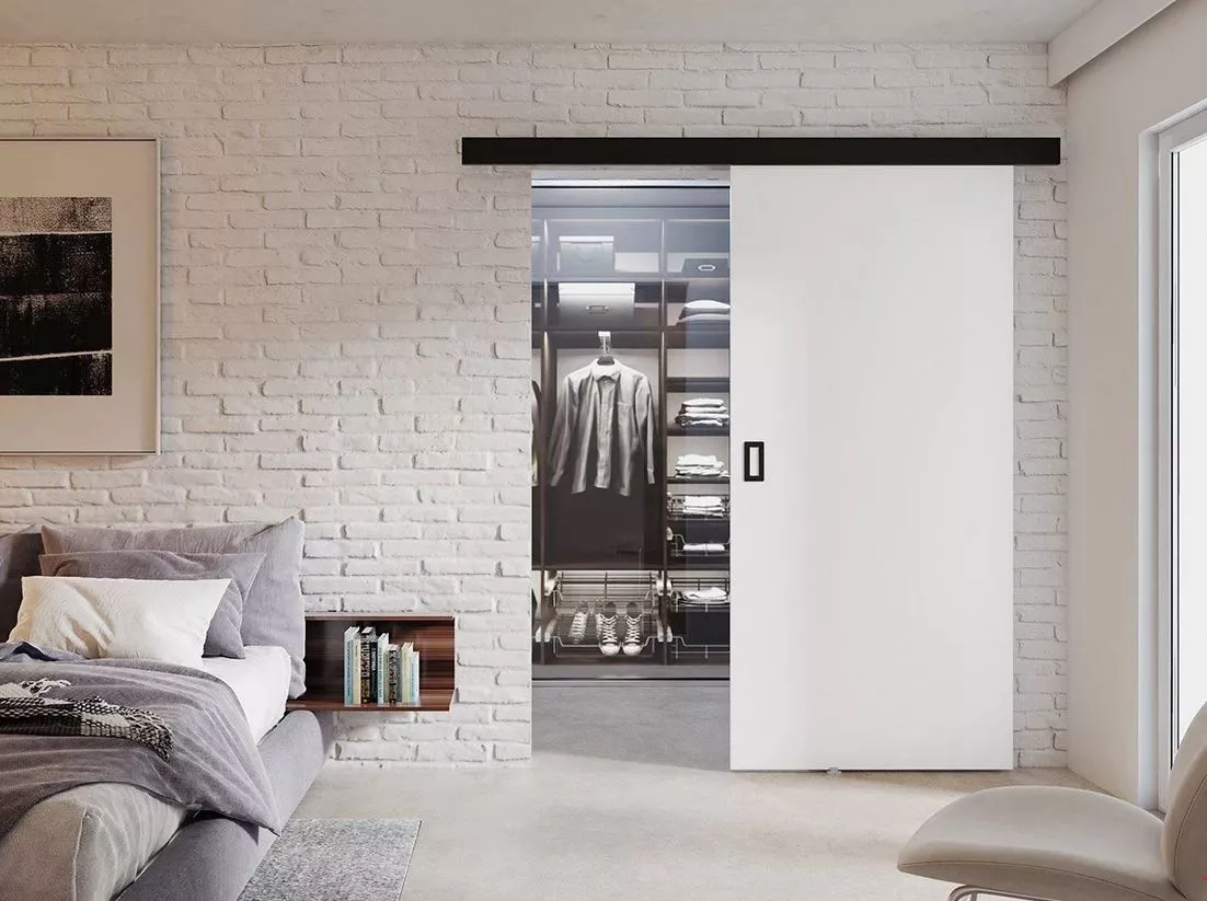 Posuvné interiérové dveře SANITA 1 jsou vhodné i do úzkých a malých místností. Jsou vybaveny samozavíračem, který zabraňuje bouchání dveří při zavírání, což výrazně prodlužuje jejich životnost a zajišťuje bezpečnost při používání.