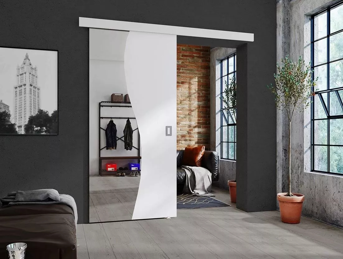 Posuvné interiérové dveře se zrcadlem MELCHOR - 70 cm, bílé