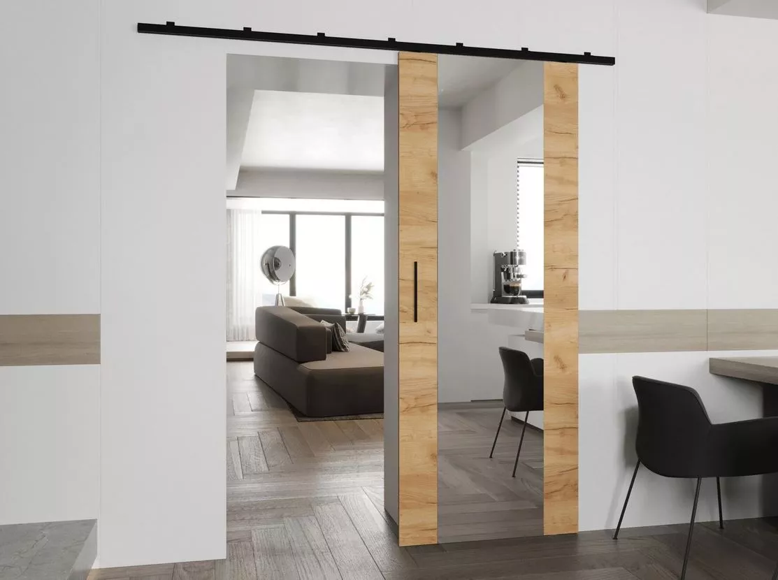 Interiérové zrcadlové posuvné dveře CONROE 2 - 90 cm, dub kraft