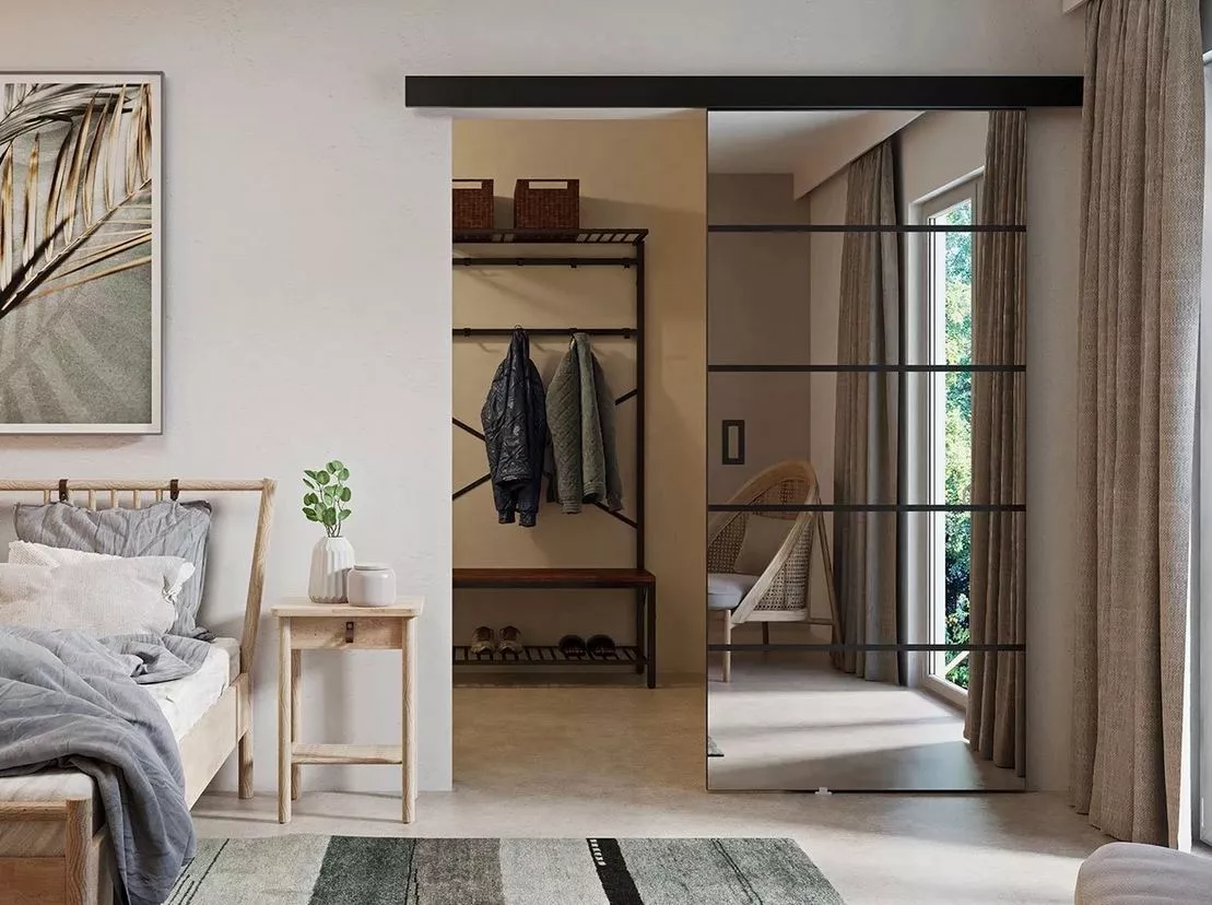 Posuvné interiérové zrcadlové dveře PEARLEN 2 - 100 cm, černé