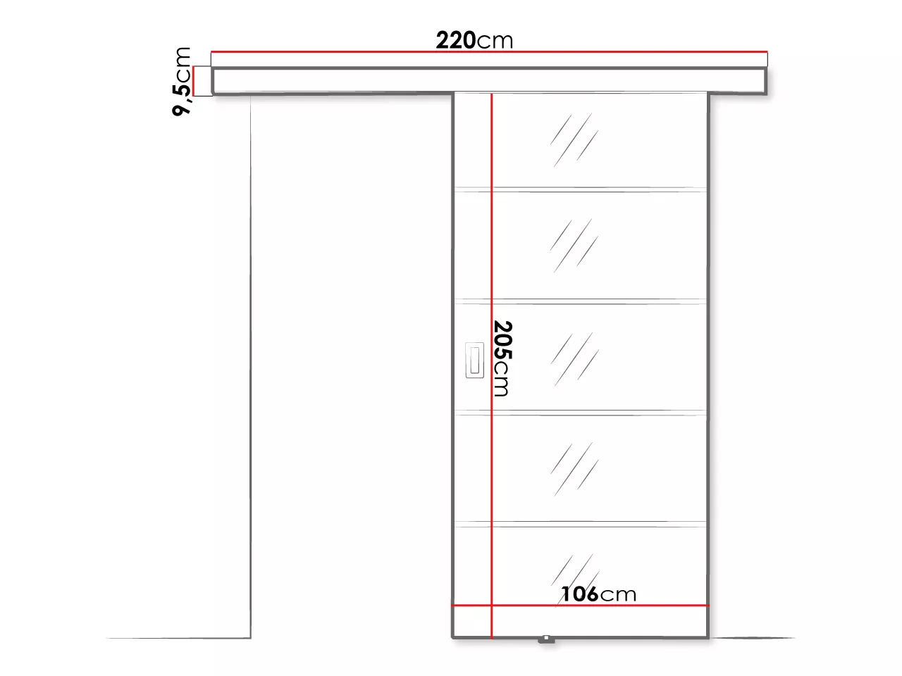 - dveře se posouvají po vodítku instalovaném nad dveřním rámem