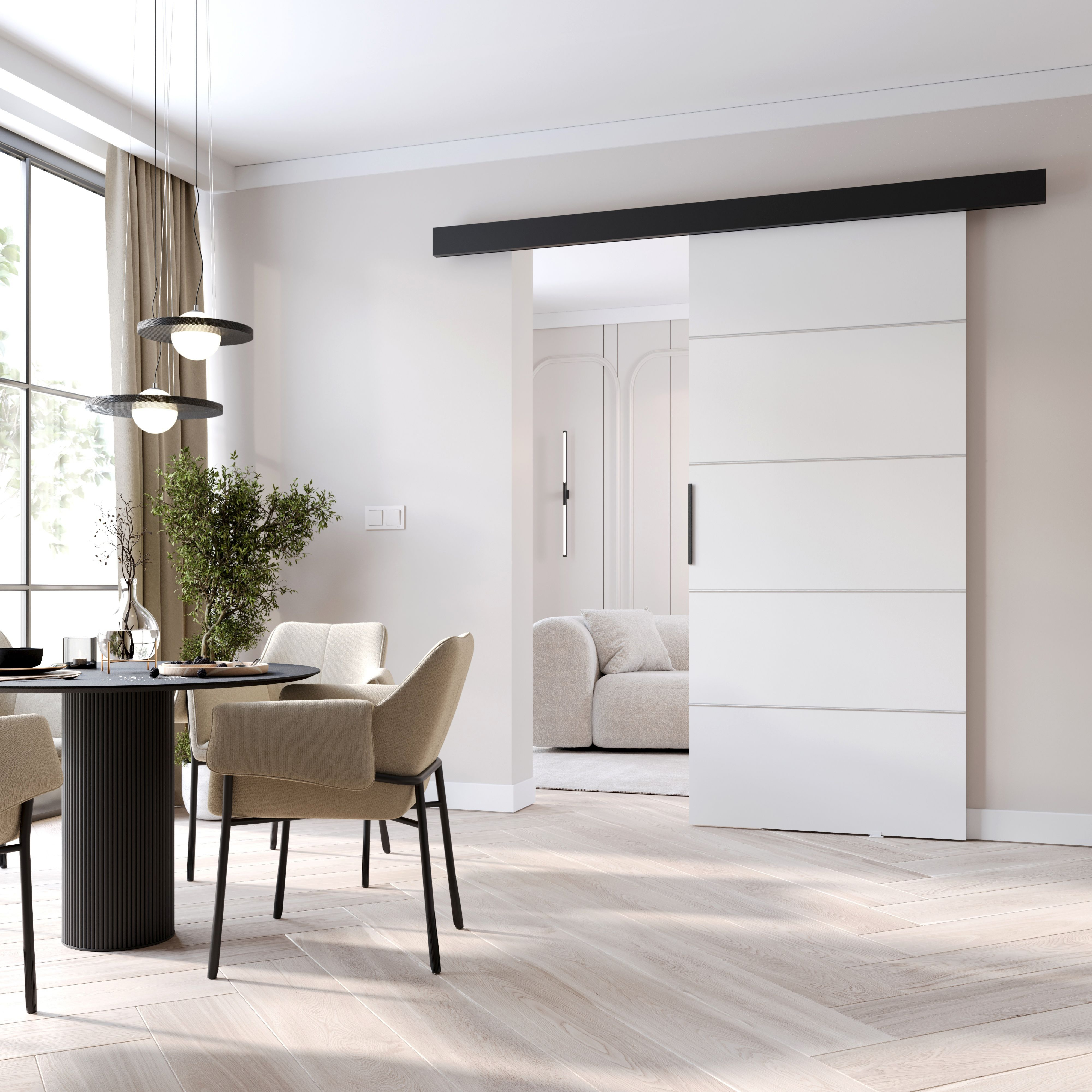 Interiérové dveře na stěnu BARRET 20 zajišťují soukromí bez časově náročné instalace. Dveře lze využít jako oddělení 2 místností. Model je jednoduchý, nadčasový a zdobí jej 4 dekorativní lišty.