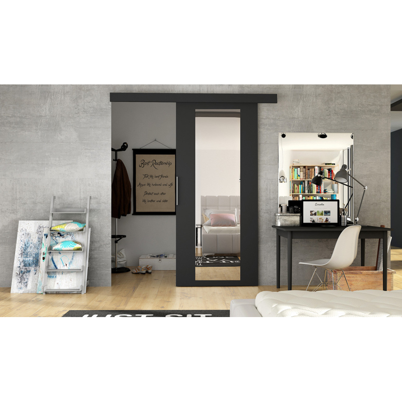 Posuvné dveře na stěnu ILAS IV se stanou luxusním doplňkem interiéru. Jejich jednoduché provedení zdobí decentní hliníkový úchyt a velké zrcadlo. Výhodou zrcadla je to, že do malých místností dokáže vnést světlo a opticky jej zvětšit. Dveře jsou vyrobeny z LTD a mají výšku 205 cm. Šířka činí 86 cm. Proti oděru a mechanickému poškození je chrání ABS hrany.