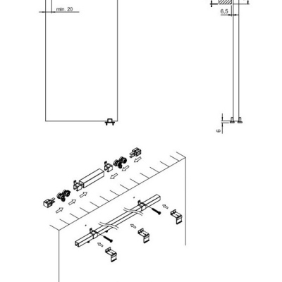 Součástí balení je systém pojezdu, ložisek a instalační materiál. Ke skříni si navíc můžete zakoupit systém tichého dovírání.