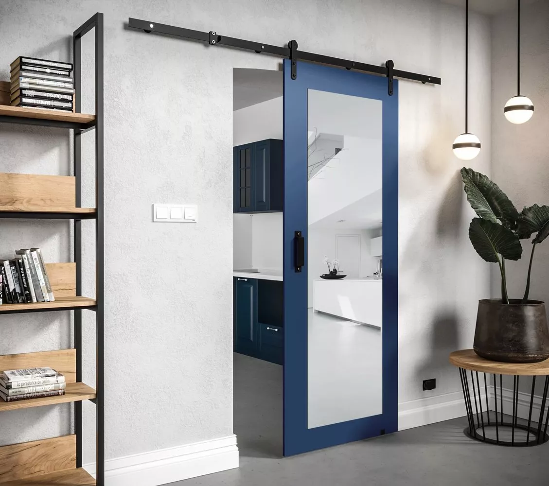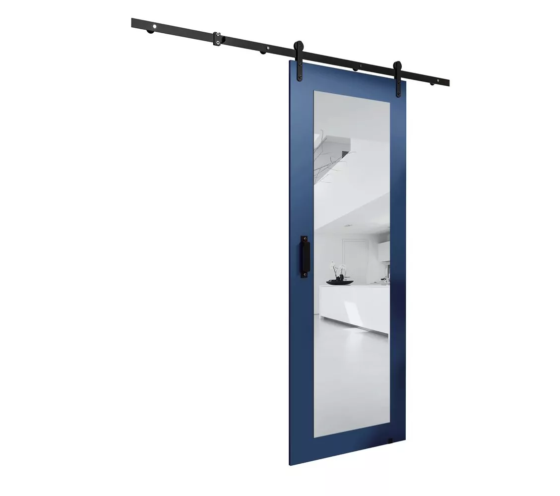 Posuvné dveře s kováním a zrcadlem LEONTINA 2 - 90 cm, modré