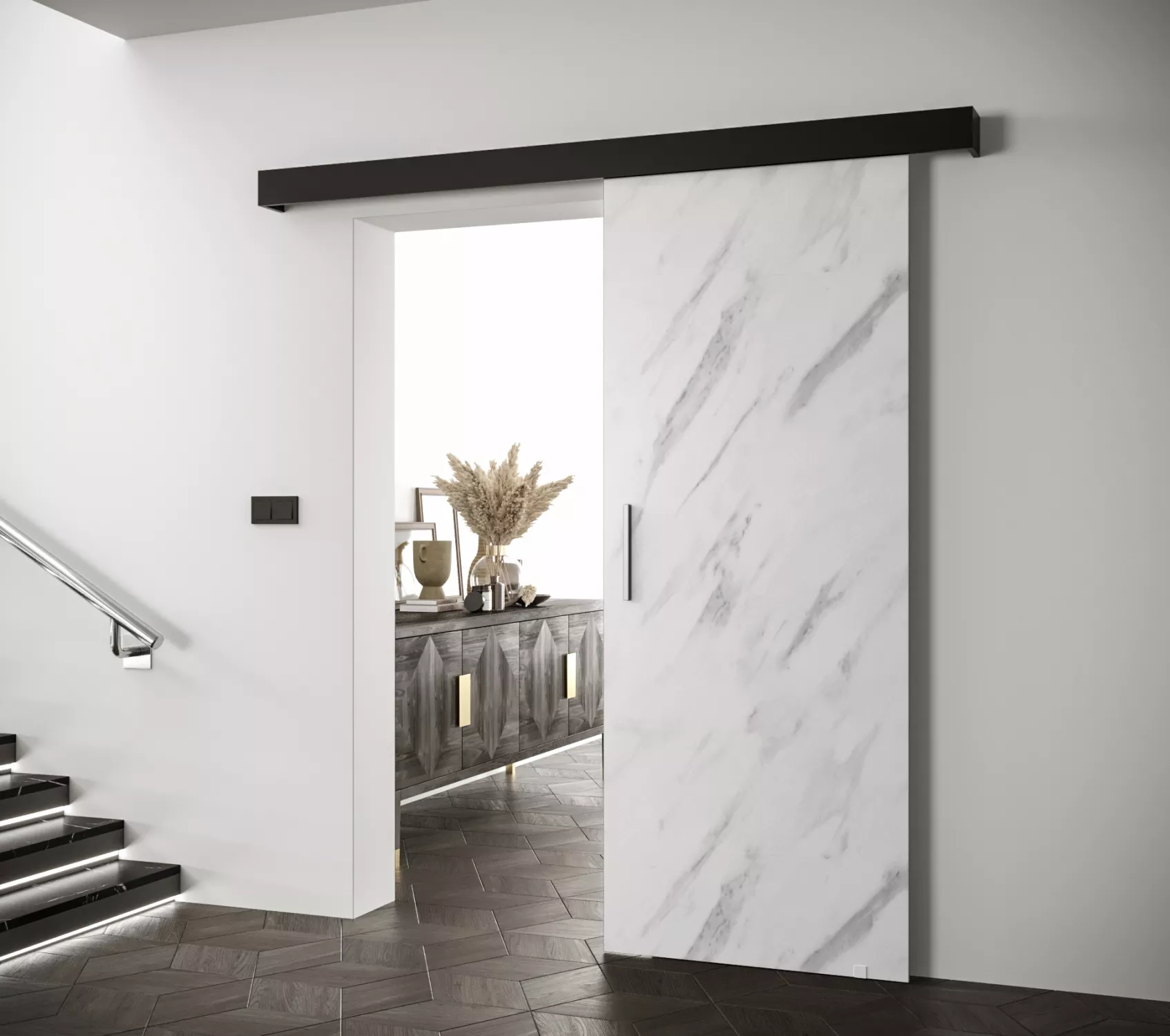 Posuvné dveře se stříbrným úchytem SALOME 1 - bílý mramor / černé