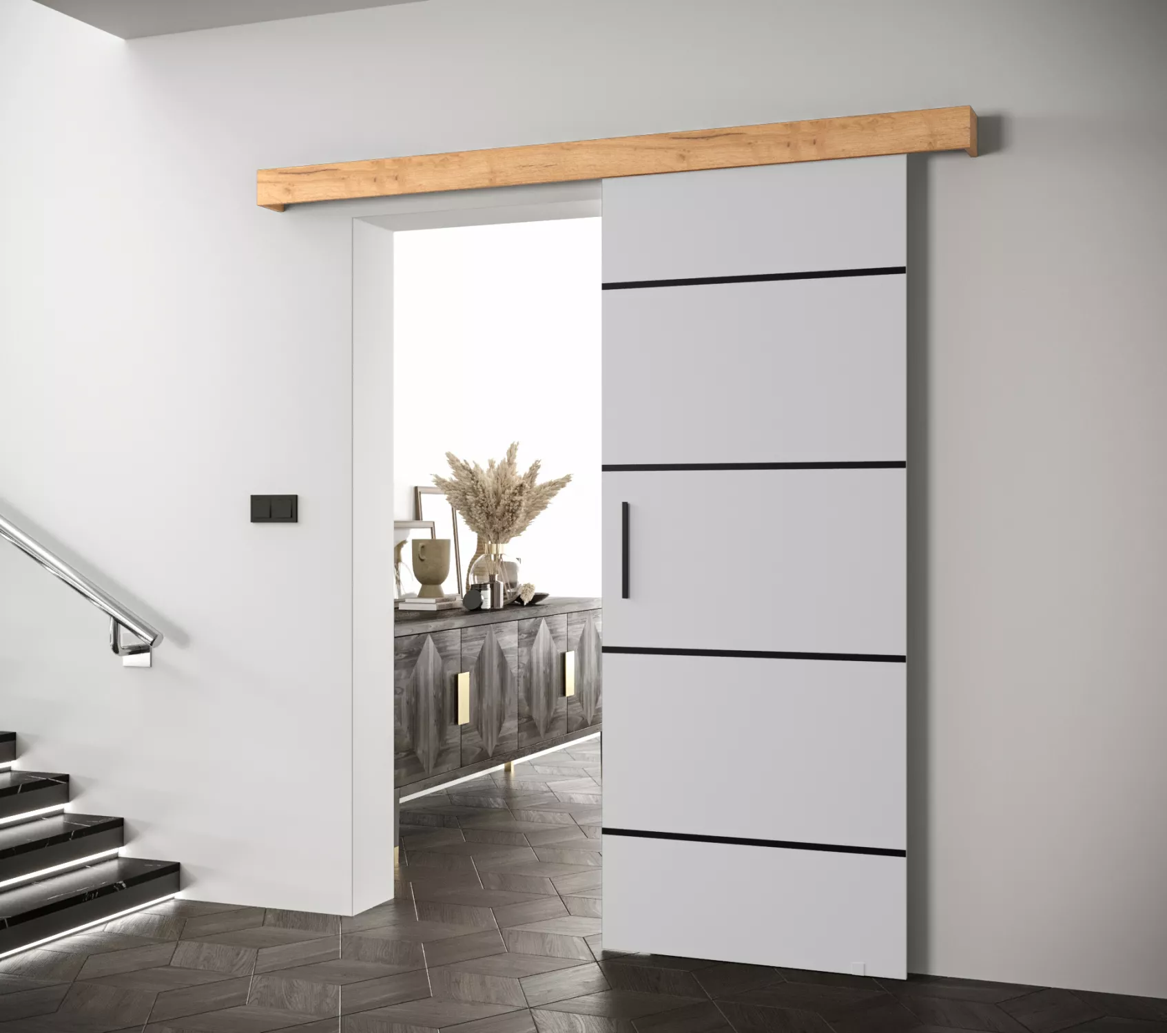 Posuvné dveře s černými úchyty SALOME 4 - bílé / dub craft zlatý