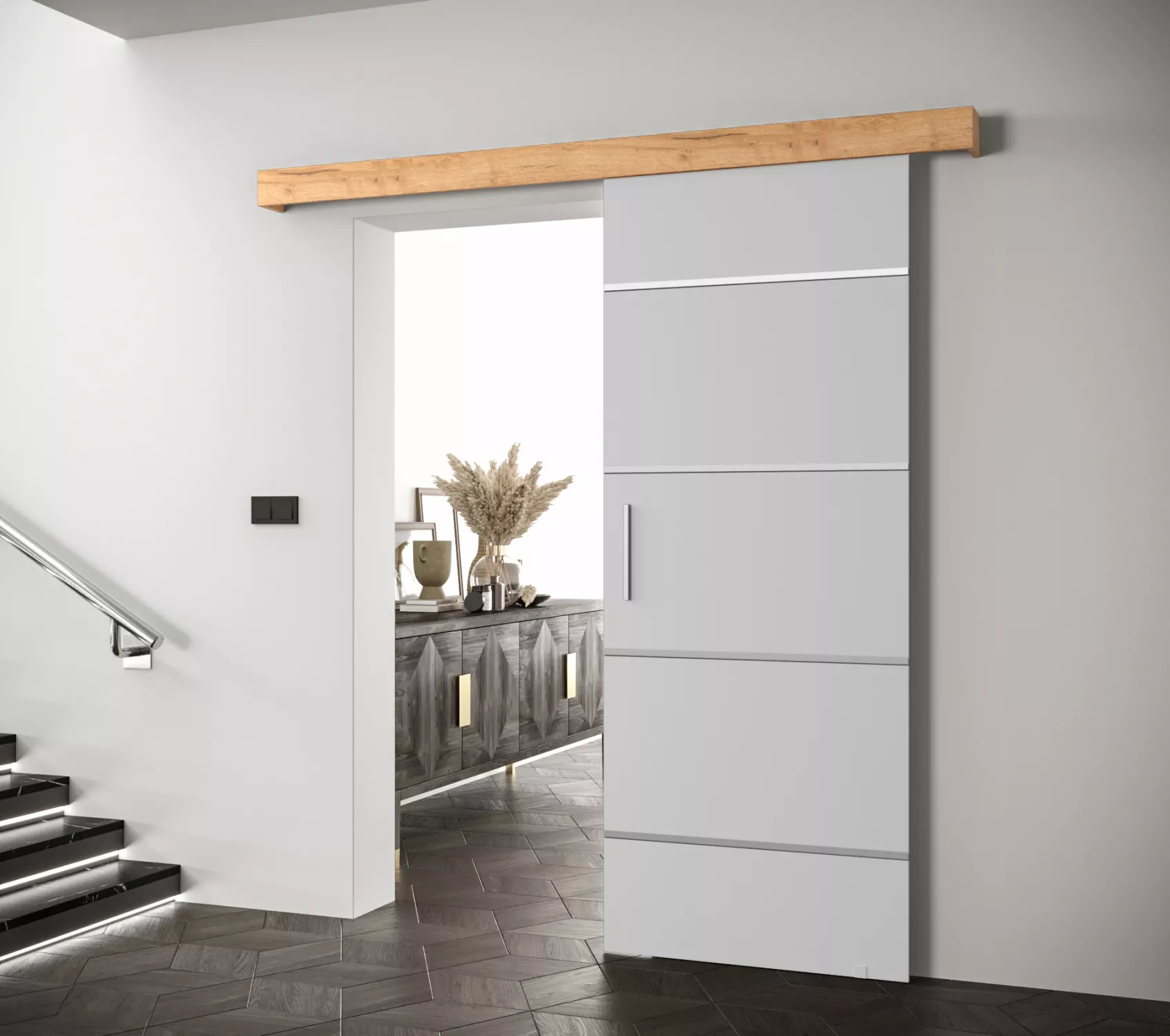 Posuvné dveře se stříbrnými úchyty SALOME 4 - bílé / dub craft zlatý