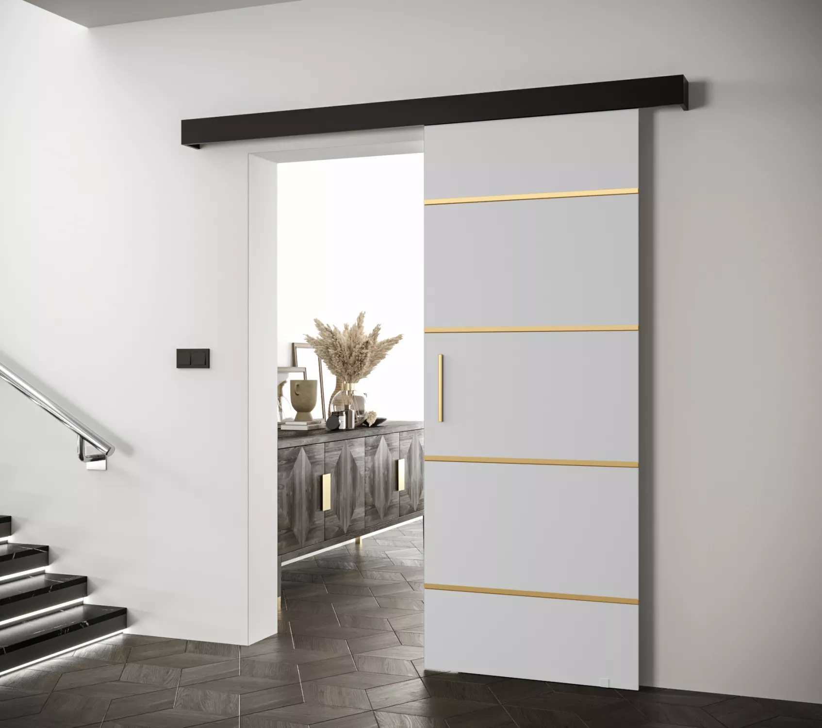 Posuvné dveře se zlatými úchyty SALOME 4 - bílé / černé