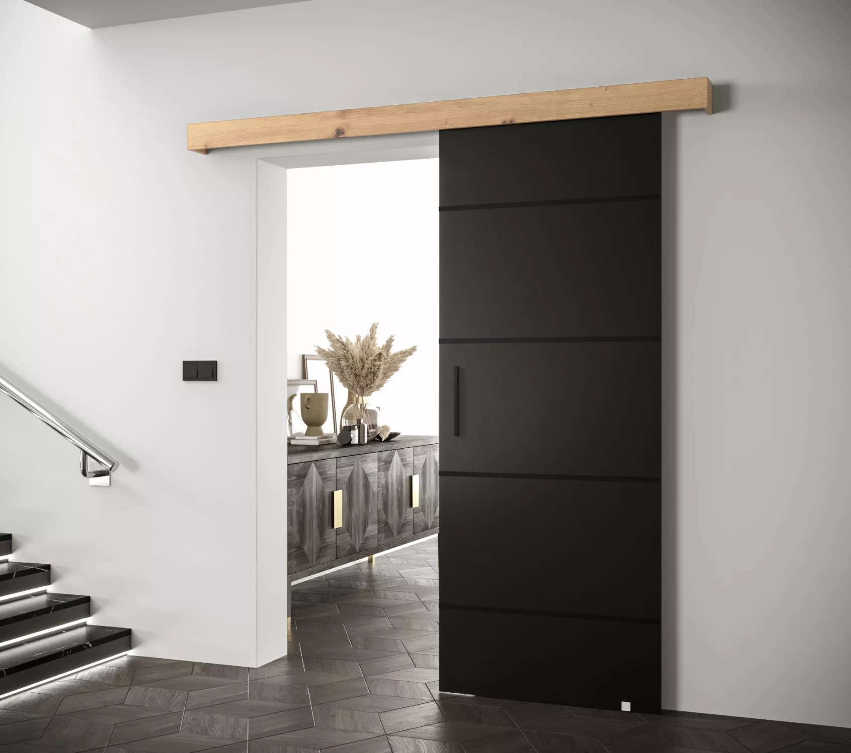 Posuvné dveře s černými úchyty SALOME 4 - černé / dub artisan