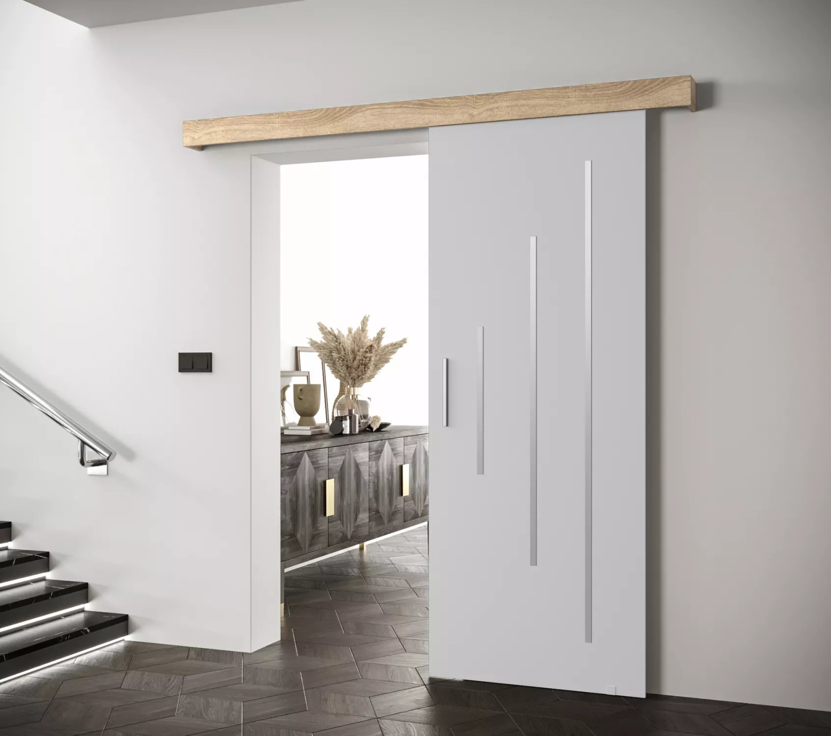 Posuvné dveře se stříbrným úchytem SALOME 11 - bílé / dub sonoma
