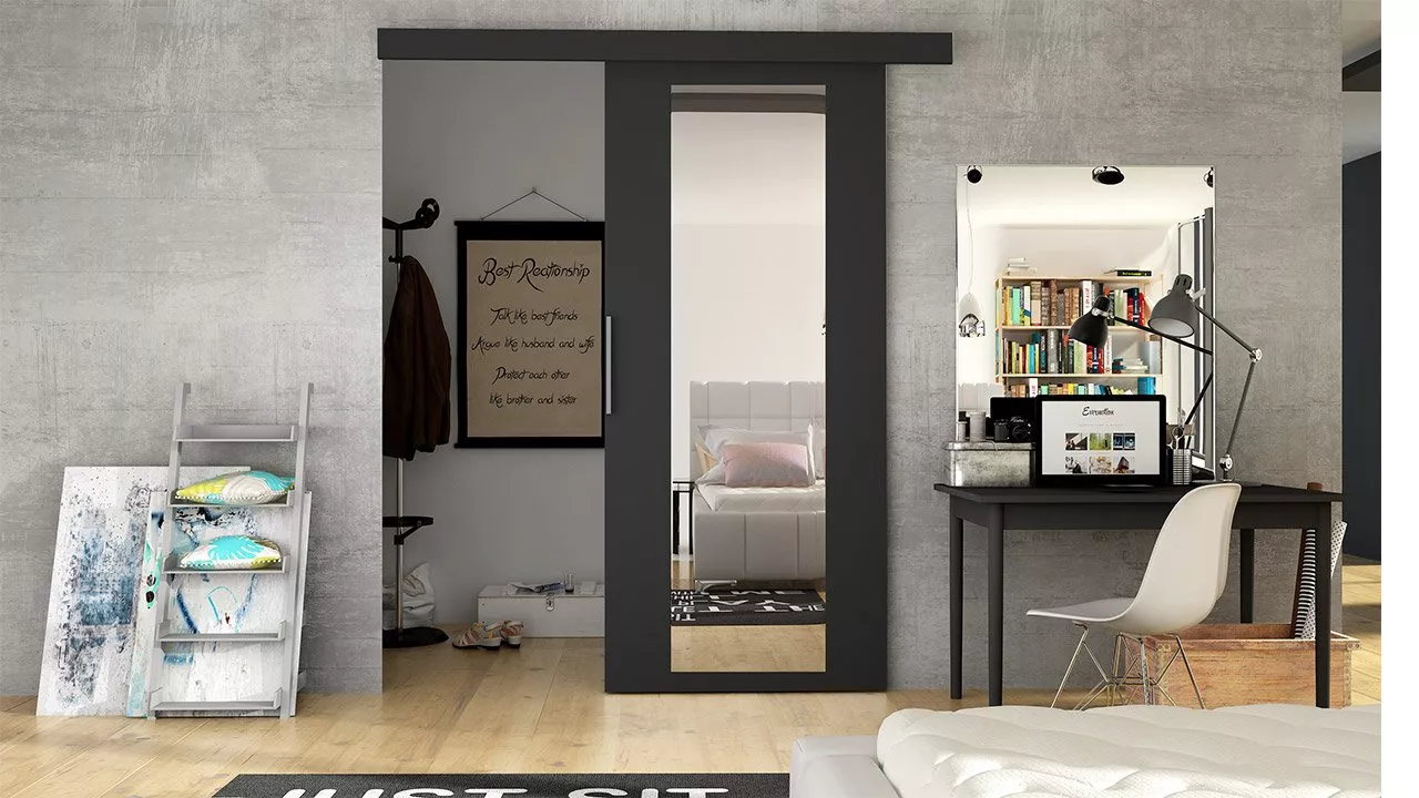 Posuvné dveře se zrcadlem SKULEN 4 - 90 cm, černé