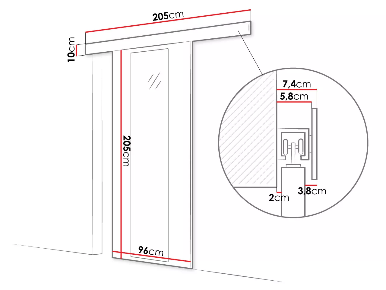 - dveře se posouvají po vodítku instalovaném nad dveřním rámem