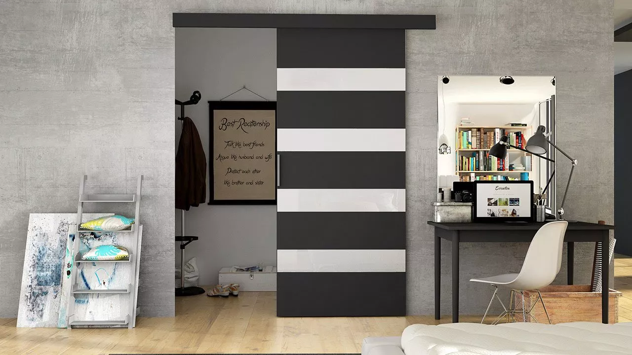 Posuvné dveře SKULEN 5 - 90 cm, černé / bílé sklo