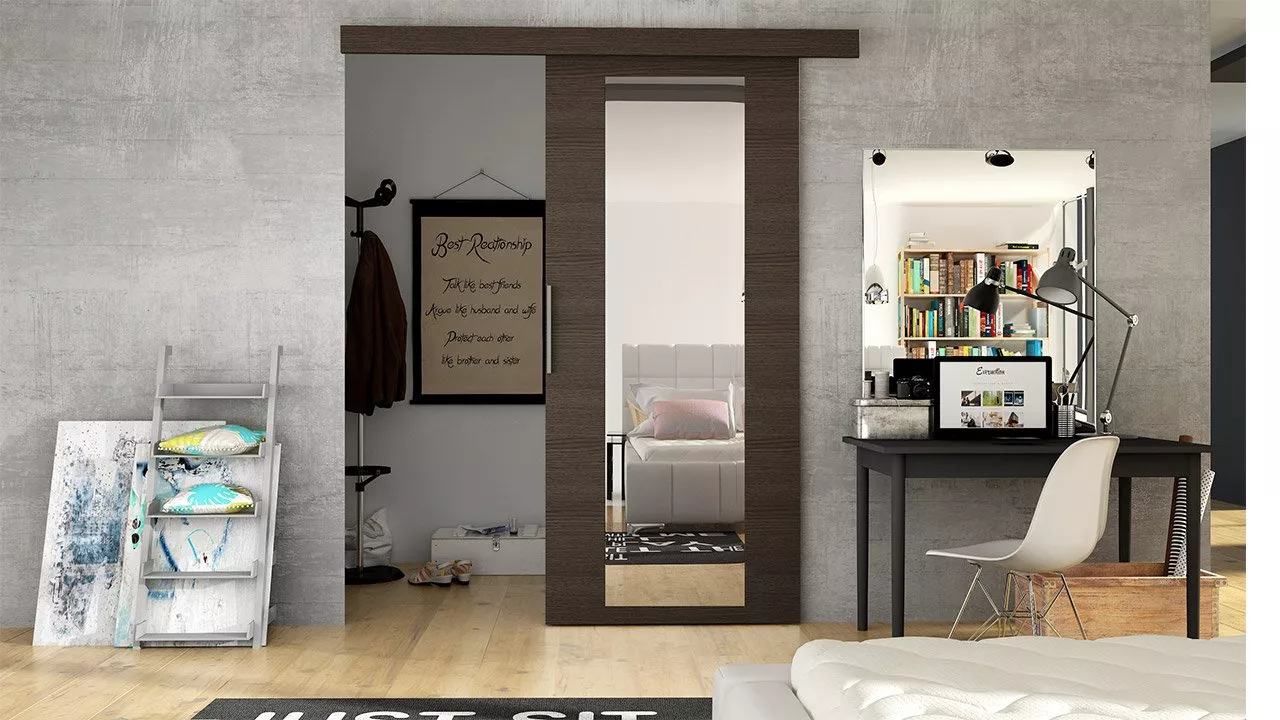 Posuvné dveře se zrcadlem MANAMI 4 - 80 cm, hnědé