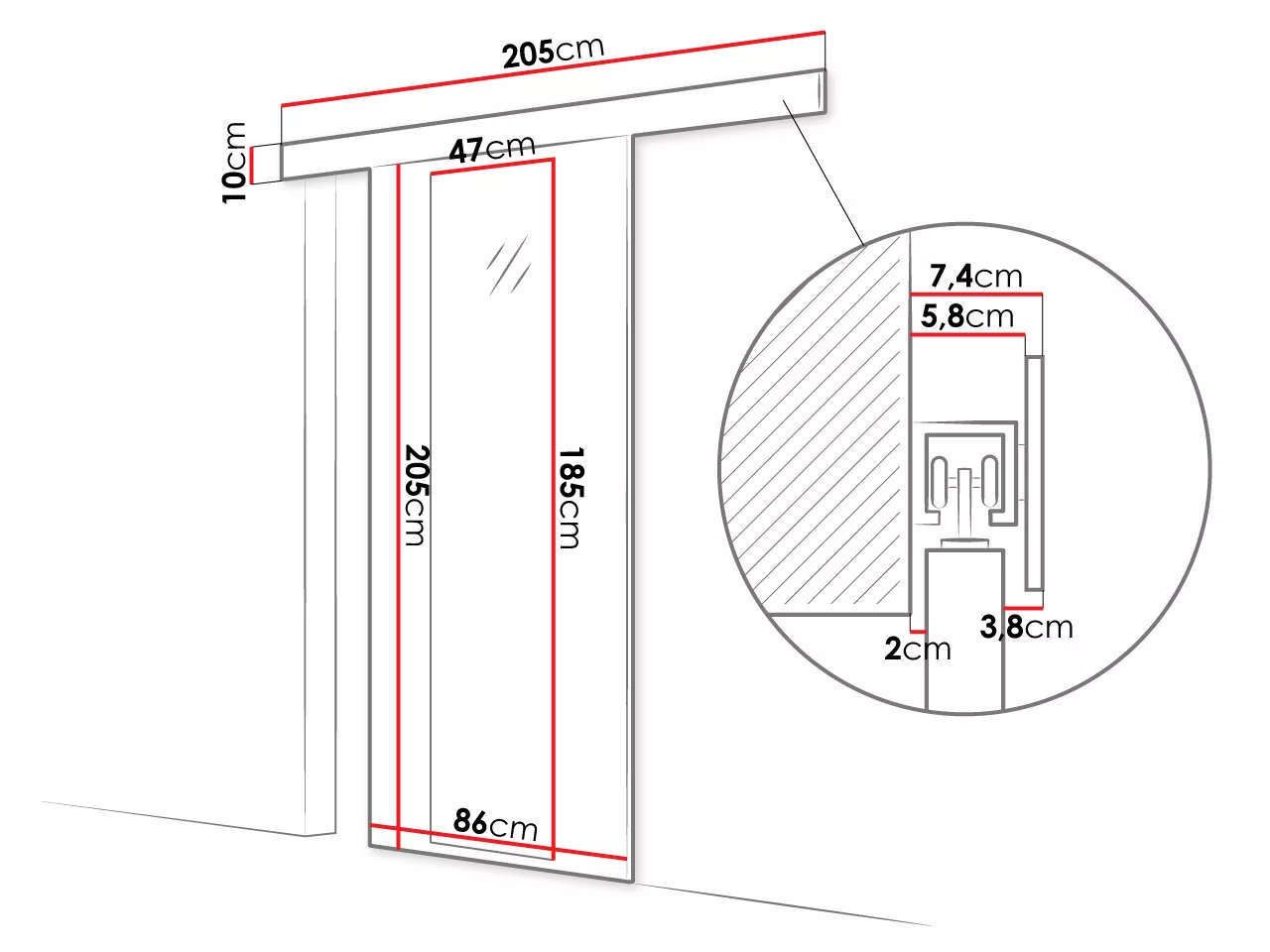- dveře se posouvají po vodítku instalovaném nad dveřním rámem