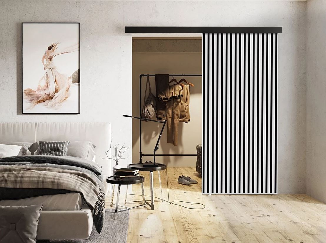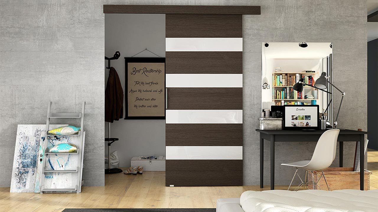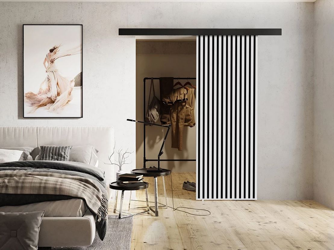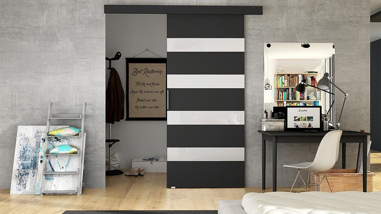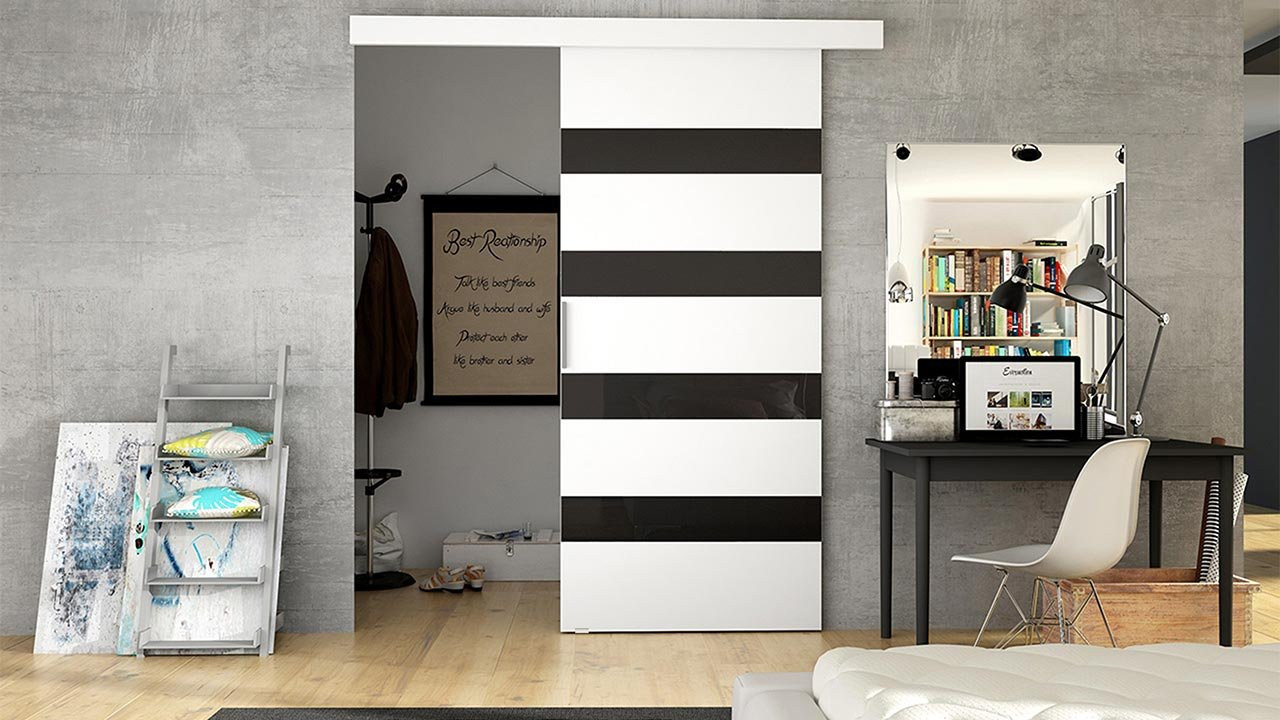 - dveře se posouvají po vodítku instalovaném nad dveřním rámem