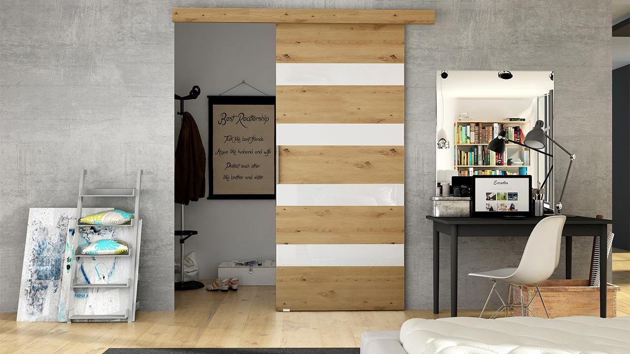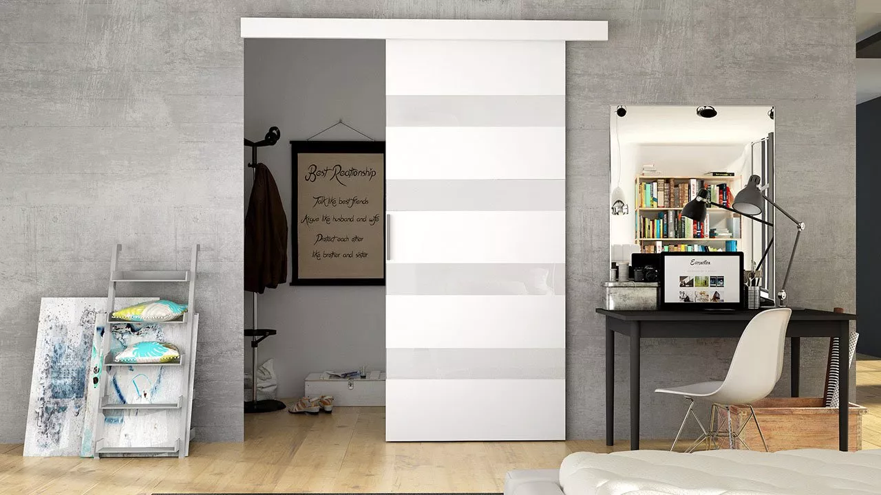 Posuvné dveře MANAMI 5 jsou perfektním řešením pro úsporu místa. Dveře zdobí lepené dekorativní prvky z bílého skla. Jsou vybaveny samozavíračem, který zabraňuje bouchání dveří při zavírání, což výrazně prodlužuje jejich životnost a zajišťuje bezpečnost při používání.