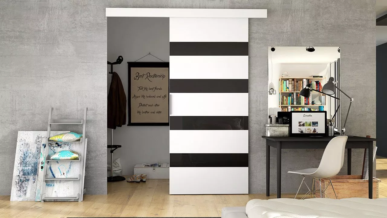 Posuvné dveře MANAMI 5 - 80 cm, bílé / černé sklo