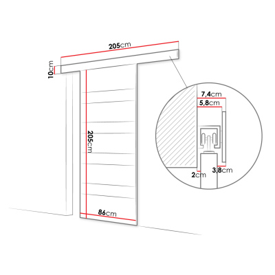 - dveře se posouvají po vodítku instalovaném nad dveřním rámem