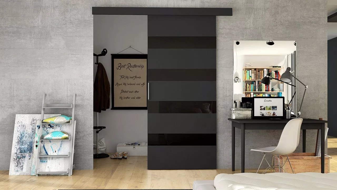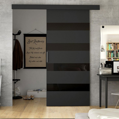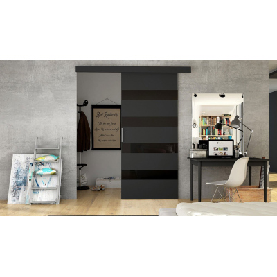 Posuvné dveře MANAMI 5 - 80 cm, černé / černé sklo
