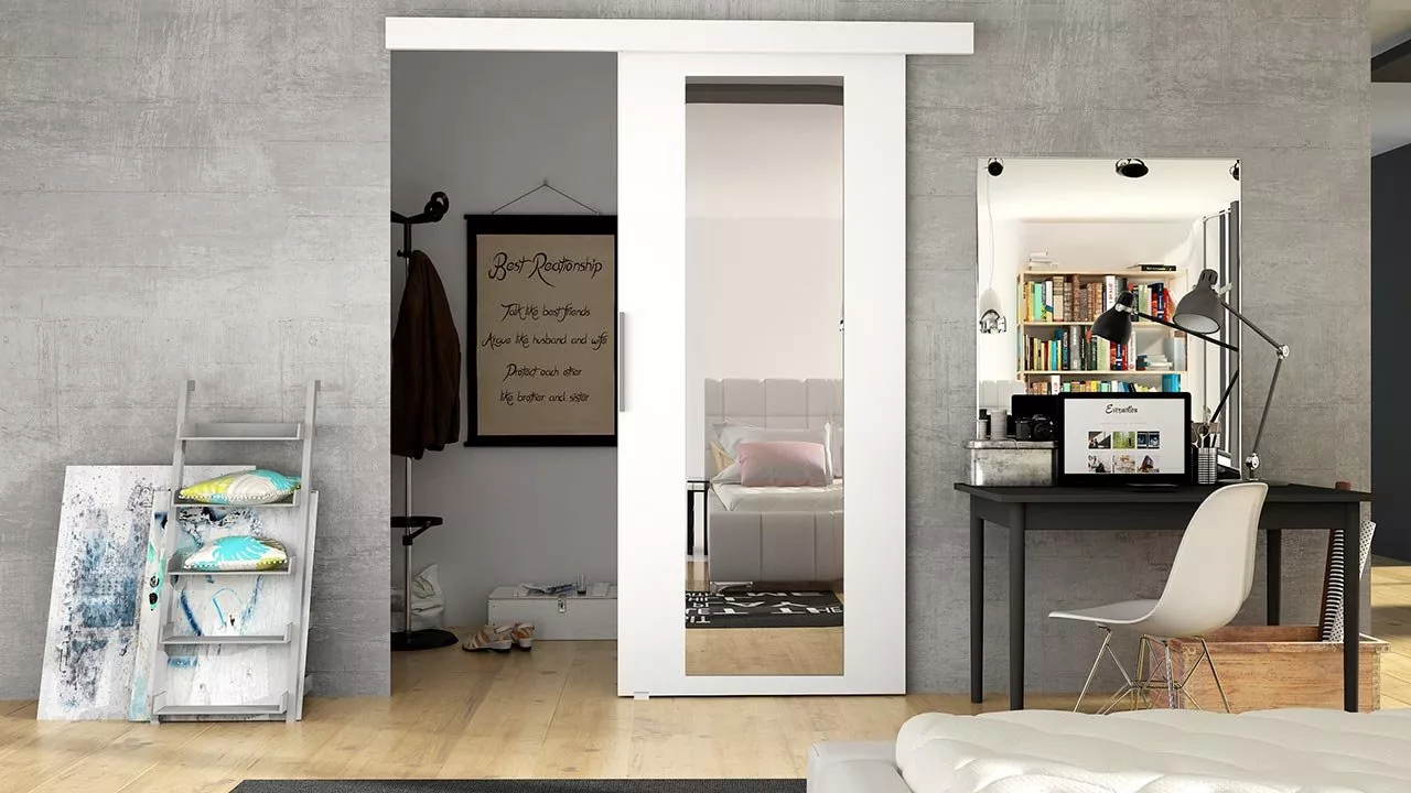 Posuvné dveře MIRAN 4 zajišťují soukromí bez časově náročné instalace. Dveře lze využít jako oddělení 2 místností nebo jako dveře do skříně či šatny. Jsou vybaveny samozavíračem, který zabraňuje bouchnutí. Dveře zdobí praktické zrcadlo, které opticky zvětší místnost.