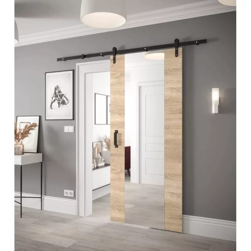 Posuvné dveře s kováním a zrcadlem LEONTINA 2 - 90 cm, dub sonoma