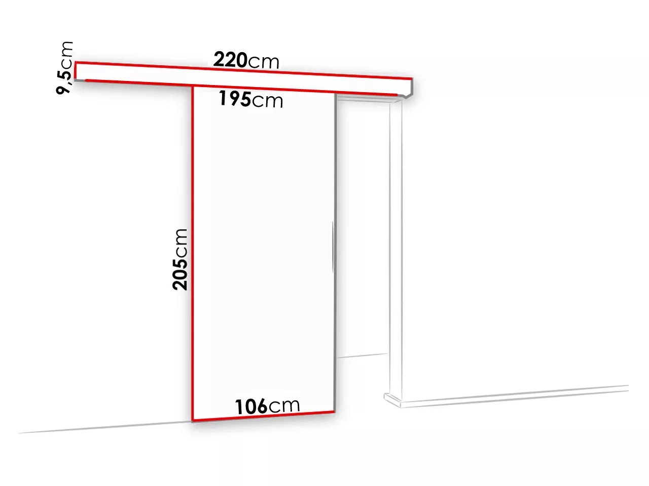 - dveře se posouvají po vodítku instalovaném nad dveřním rámem