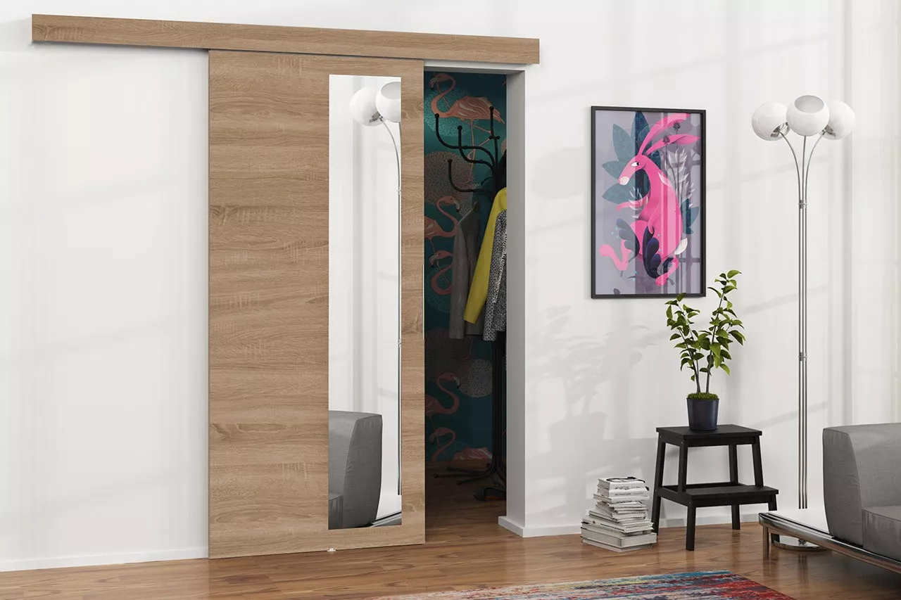 Posuvné interiérové dveře se zrcadlem VIGRA 5 - 100 cm, dub sonoma