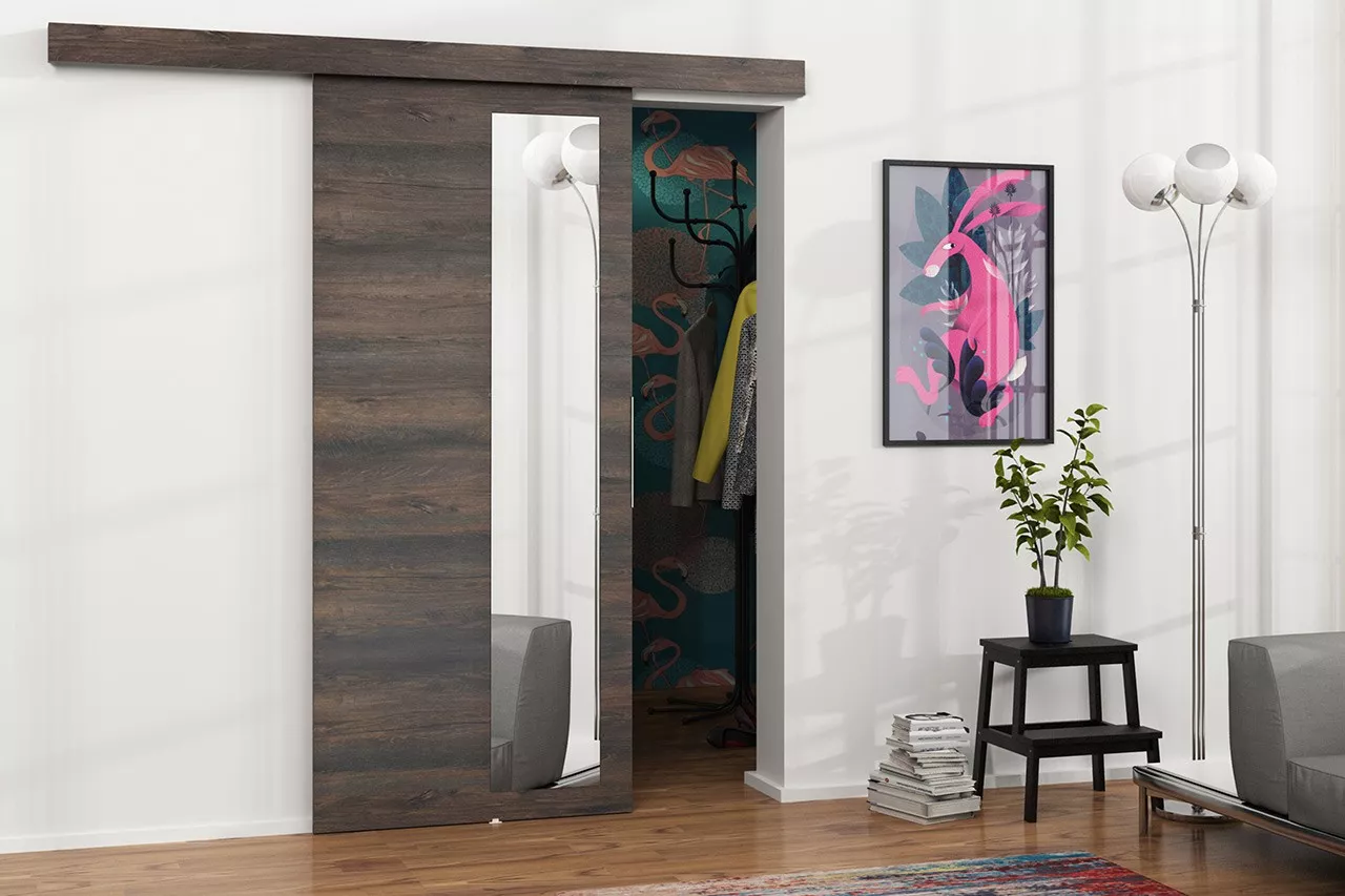 Posuvné interiérové dveře se zrcadlem VIGRA 5 zajišťují soukromí bez časově náročné instalace. Zrcadlo zdobící přední část dveří má kromě dekorativních hodnot i praktickou funkci - opticky zvětšuje prostor. Dveře se vyznačují kvalitním posuvným systémem a samozavíračem, který zabraňuje bouchnutí.