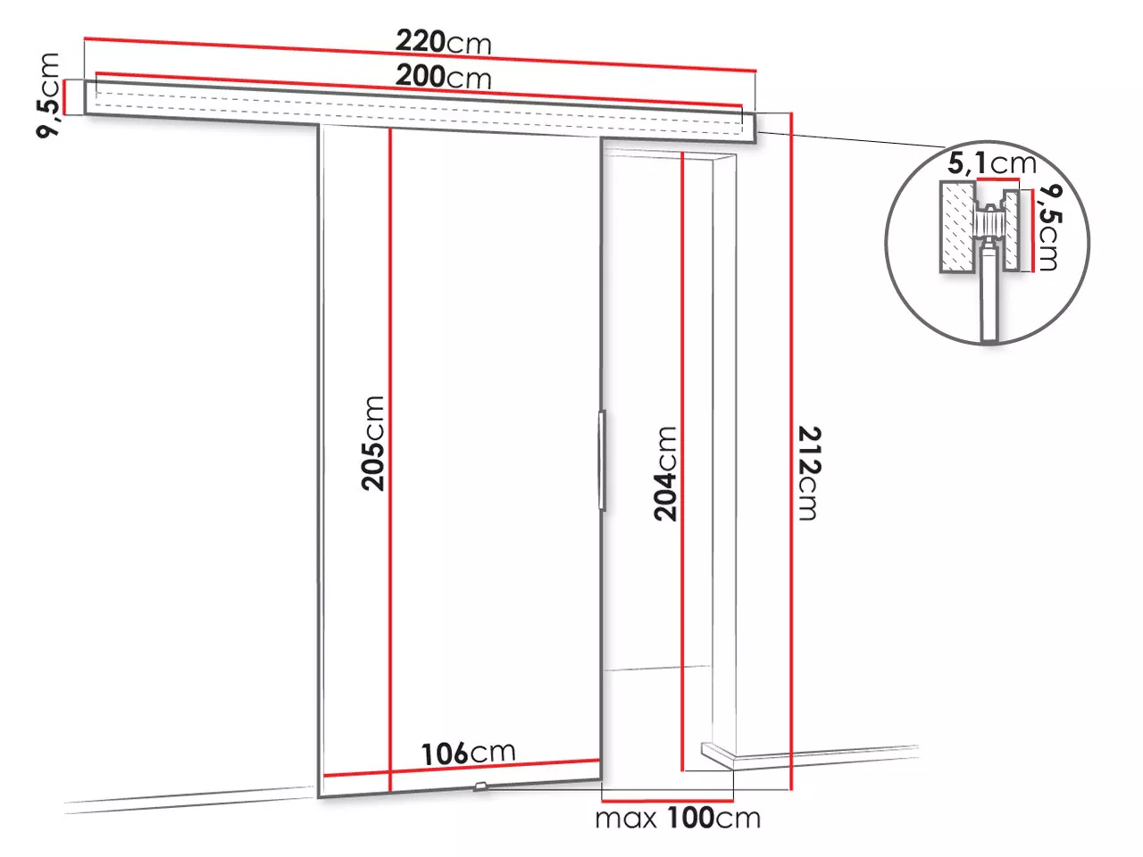 - dveře se posouvají po vodítku instalovaném nad dveřním rámem