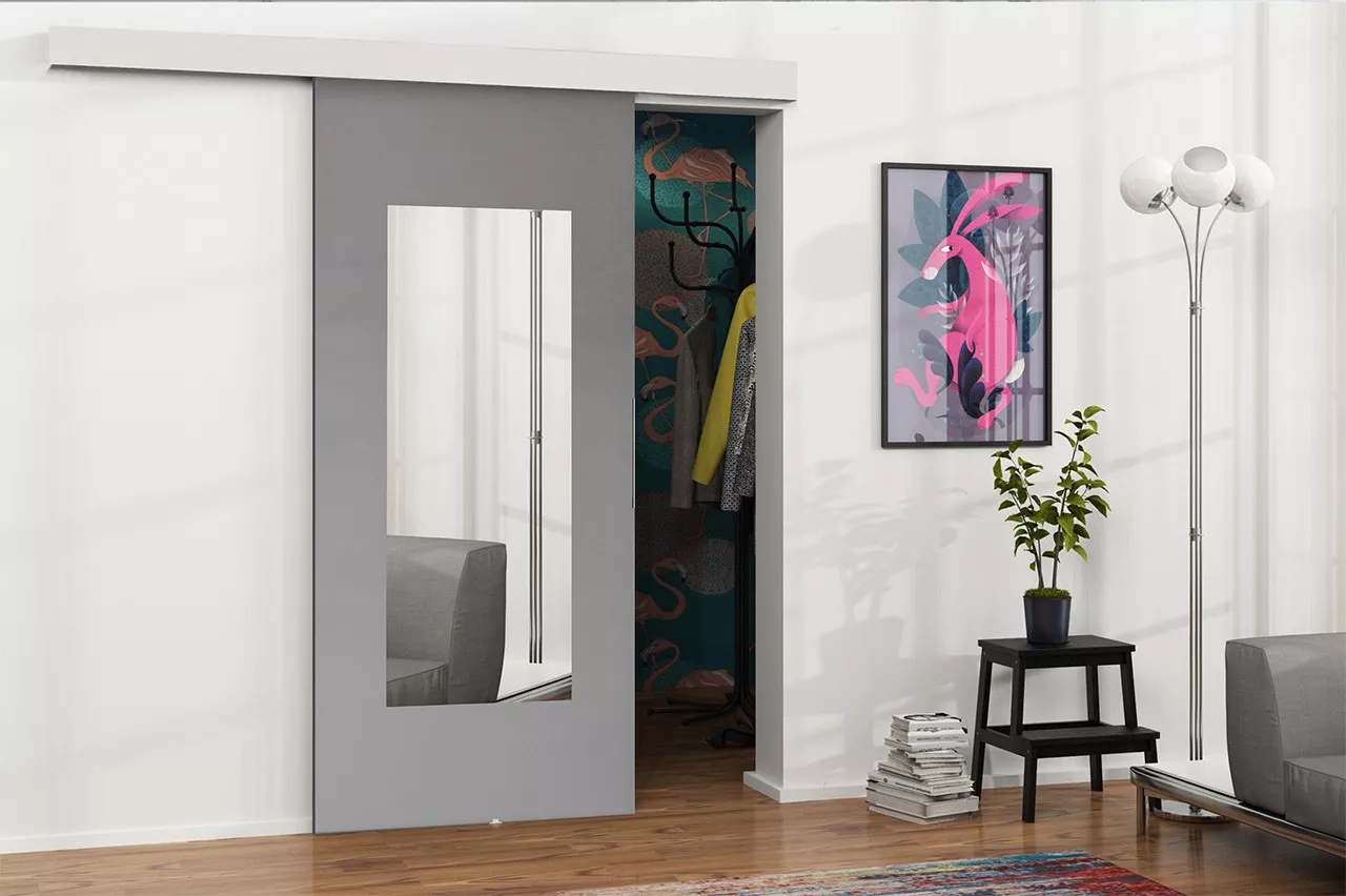 Posuvné interiérové dveře se zrcadlem VIGRA 9 zajišťují soukromí bez časově náročné instalace. Zrcadlo zdobící přední část dveří má kromě dekorativních hodnot i praktickou funkci - opticky zvětšuje prostor. Dveře se vyznačují kvalitním posuvným systémem a samozavíračem, který zabraňuje bouchnutí.