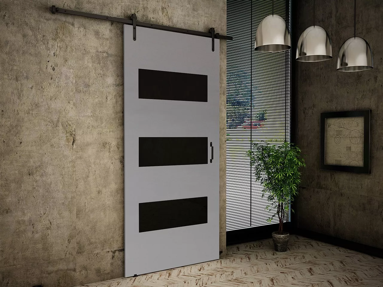Posuvné interiérové dveře XAVIER 2 jsou perfektním řešením pro úsporu místa. Dveře zdobí lepené dekorativní prvky z černého skla. Jsou vybaveny samozavíračem, který zabraňuje bouchání dveří při zavírání, což výrazně prodlužuje jejich životnost a zajišťuje bezpečnost při používání.