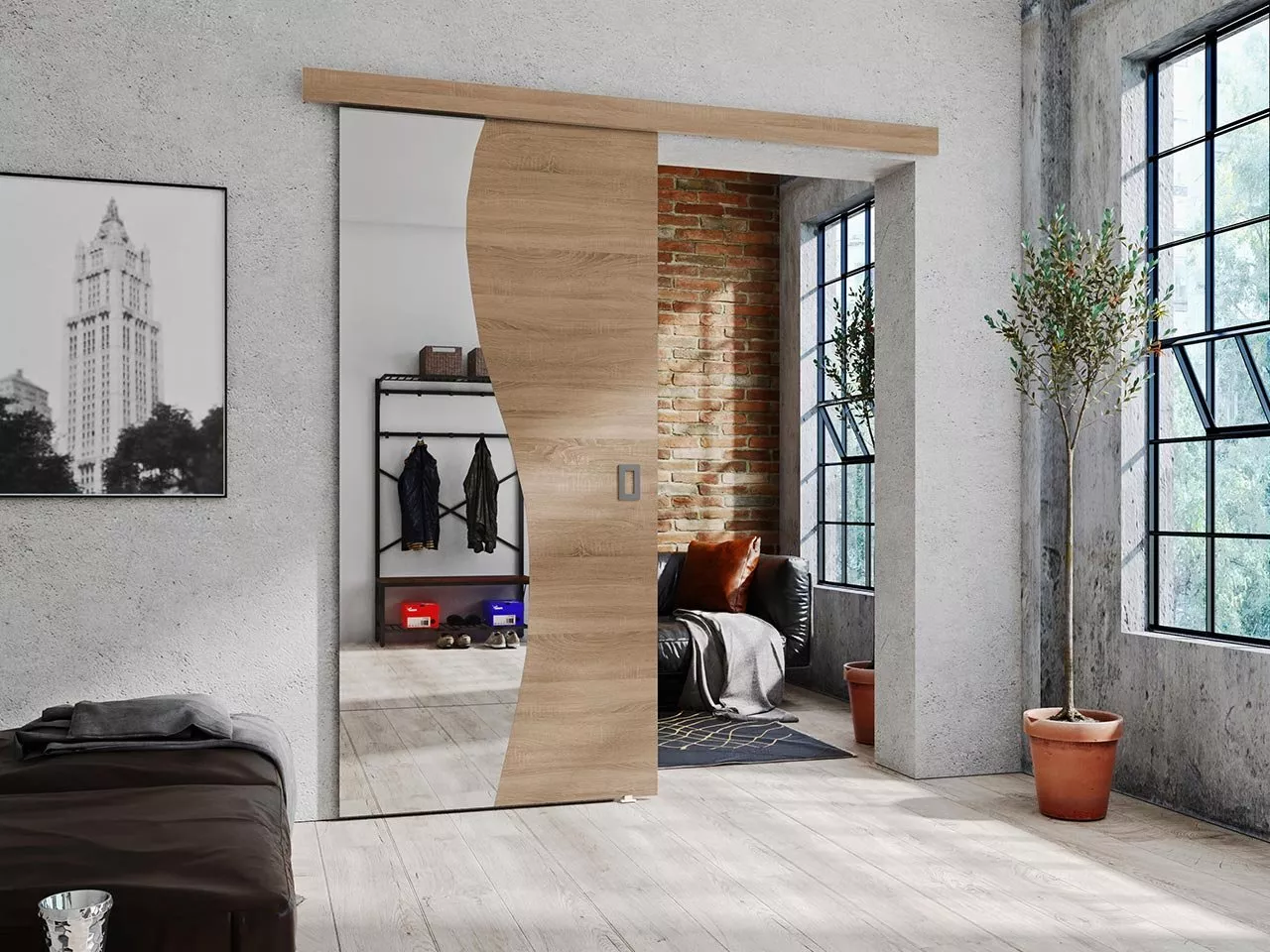 Posuvné interiérové dveře se zrcadlem MELCHOR - 90 cm, dub sonoma