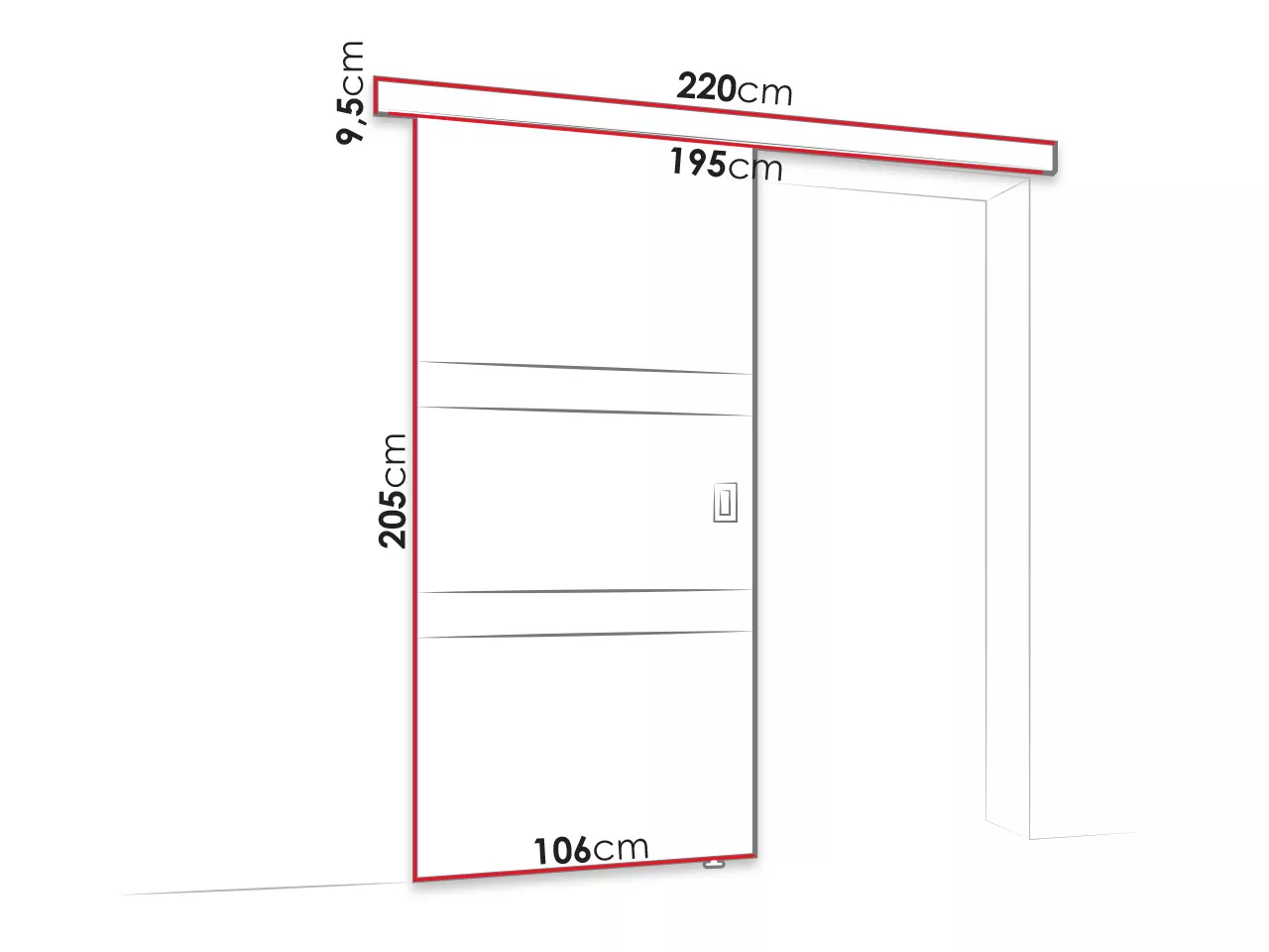 - dveře se posouvají po vodítku instalovaném nad dveřním rámem