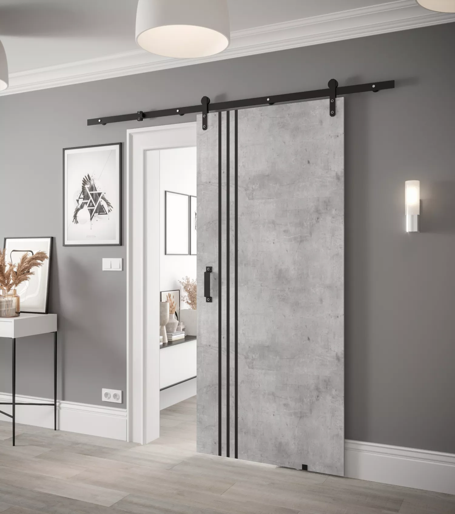 Posuvné dveře s kováním LEONTINA 7 - 90 cm, beton