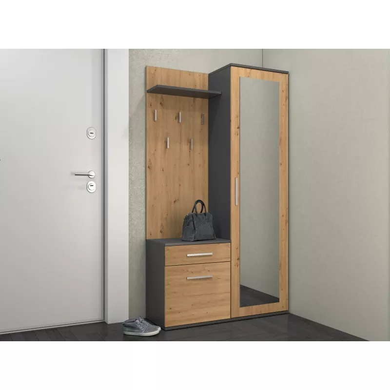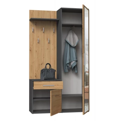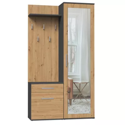 Předsíňová stěna se zrcadlem RASMUS - dub artisan / antracitová