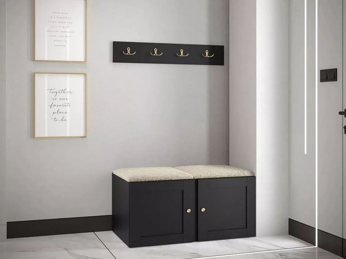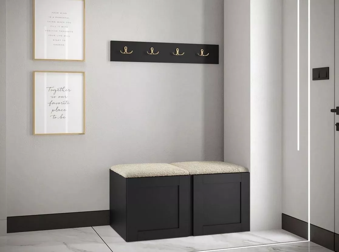 Stěna do chodby se sedacím botníkem MALIA 3 - černá / světlá béžová