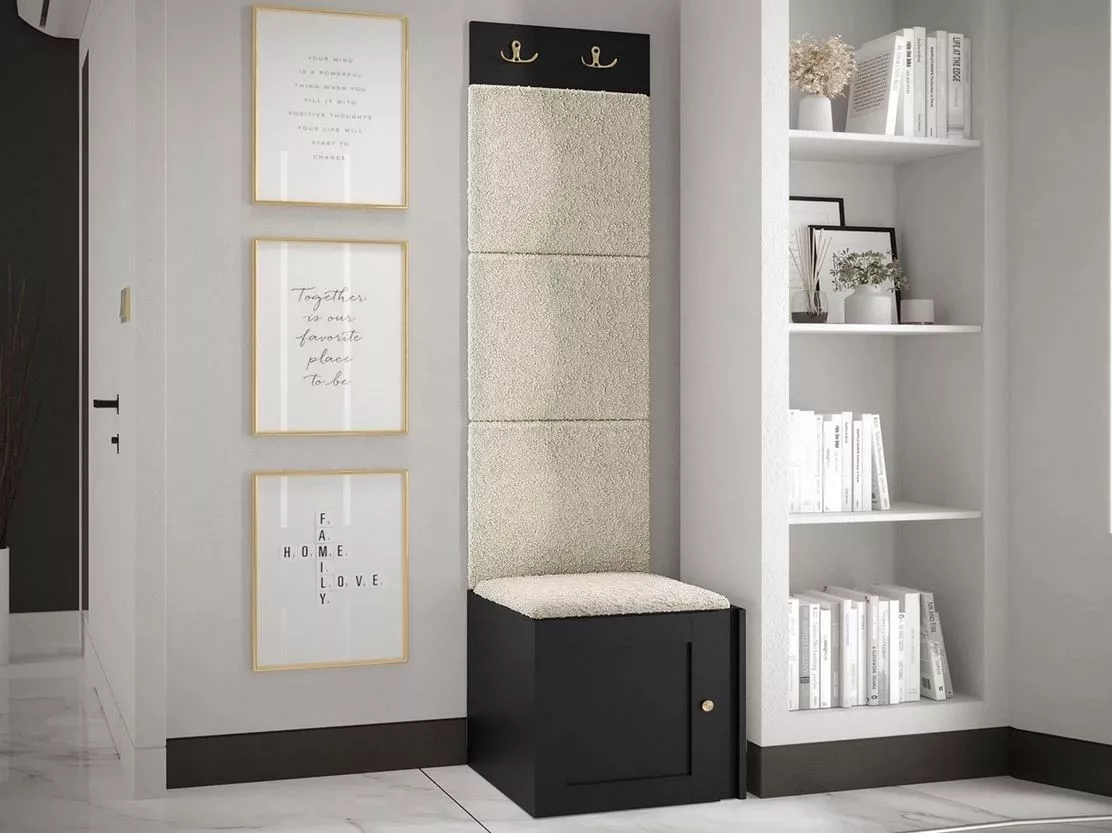 Stěna do chodby se sedacím botníkem MALIA 4 - černá / světlá béžová
