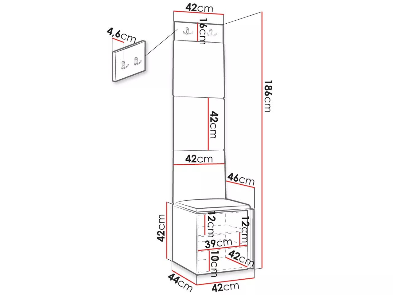 - závěsný panel s věšáky: 42/16/4,6 cm