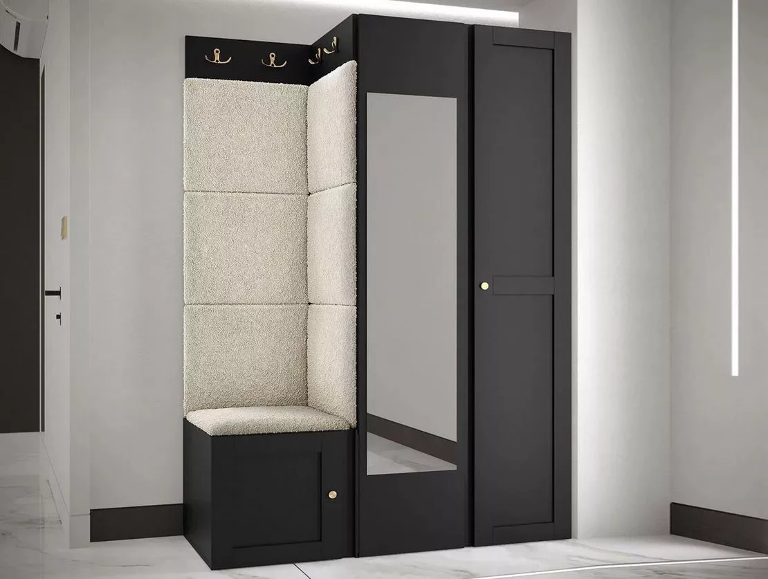 Přeměňte svou předsíň na útulný a stylový prostor. MALIA nabízí chytré úložné řešení a luxusní prvky, jako jsou čalouněné panely a zlaté úchytky. Nejenže pomůže s organizací, ale také zlepší akustiku a ochrání stěny před opotřebením.