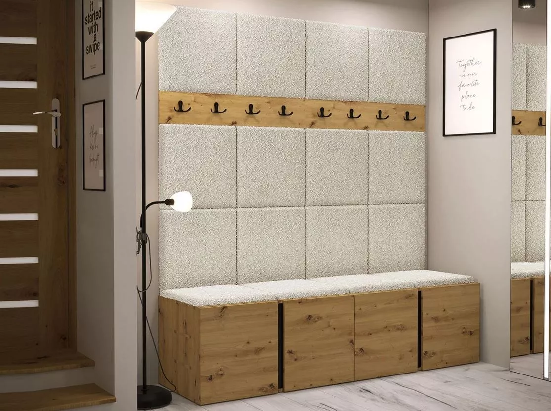 Stěna do předsíně s botníkem a panely 42x42 SELAND 6 - artisan / černá / světlá béžová