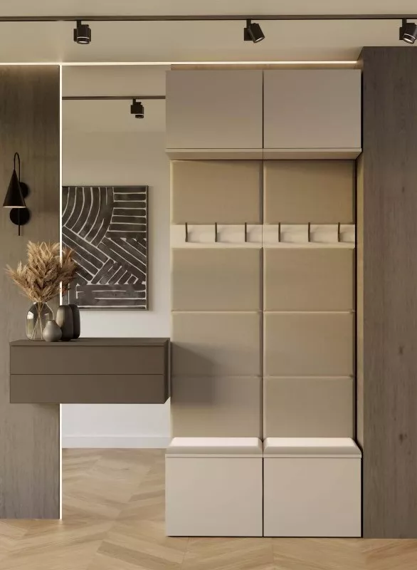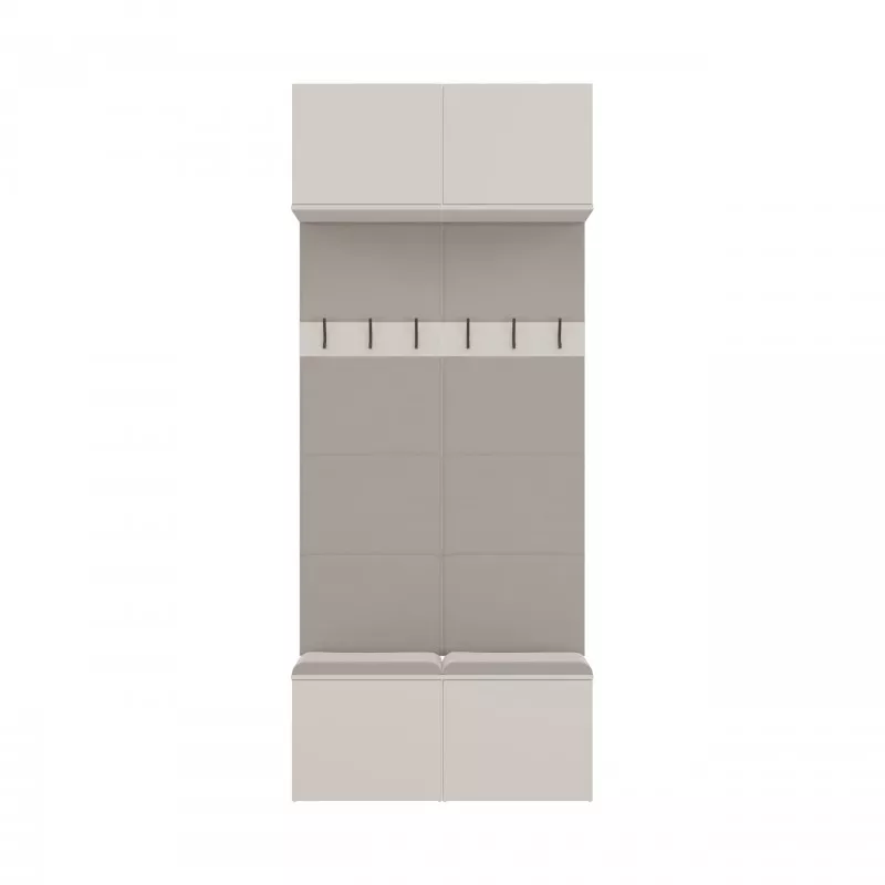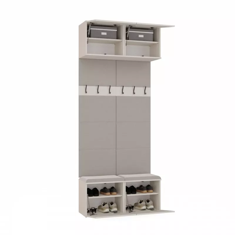 Nábytek do předsíně OPELIKA je kompaktní a funkční stěna do předsíně, která kombinuje pohodlný sedací botník, panel s věšáky a praktické horní a spodní skříňky. Díky promyšlenému designu bude vaše předsíň vždy upravená a přehledná.