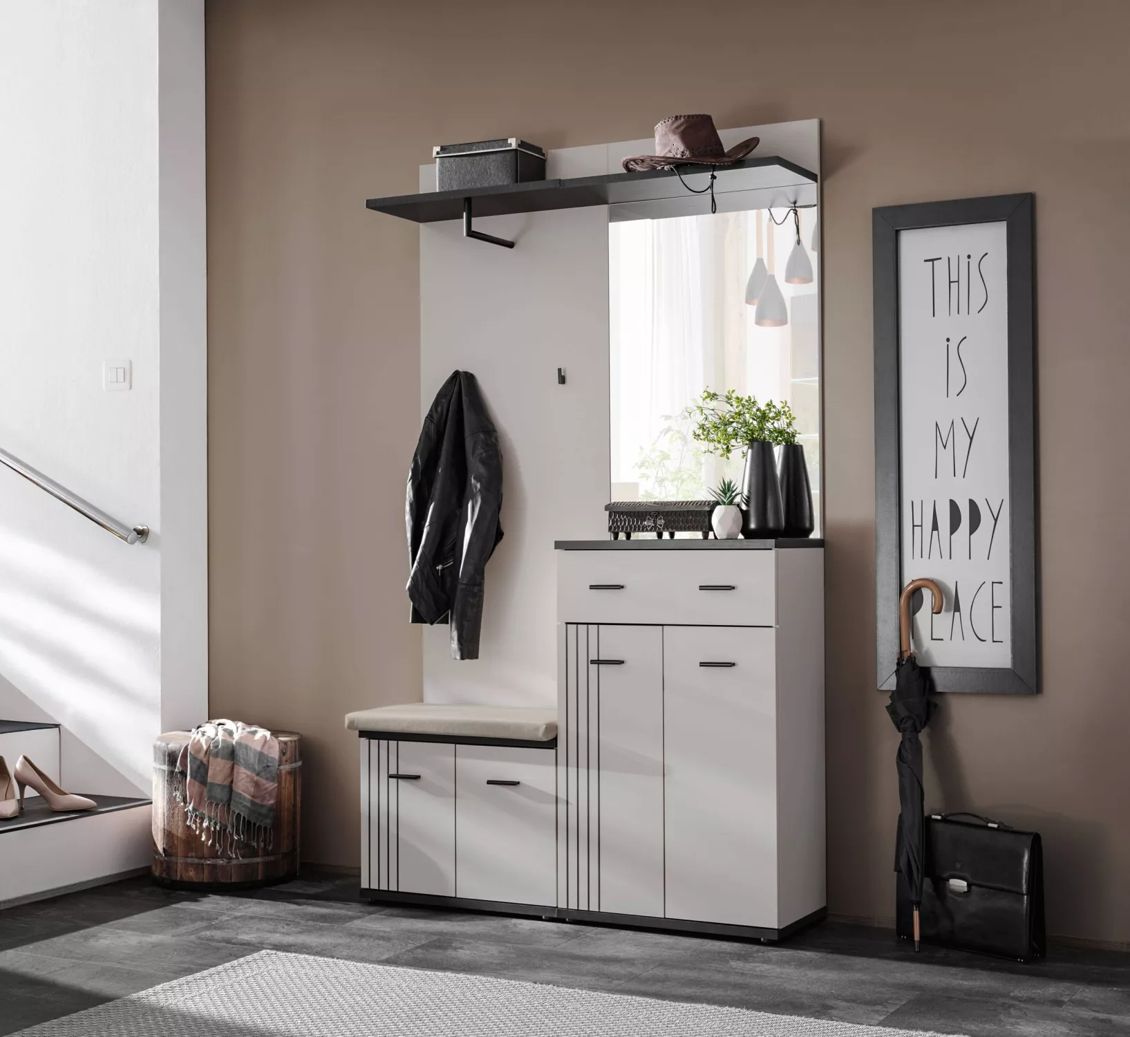 Stěna do předsíně PETUNIA 2 s podsedákem - kašmír / černá