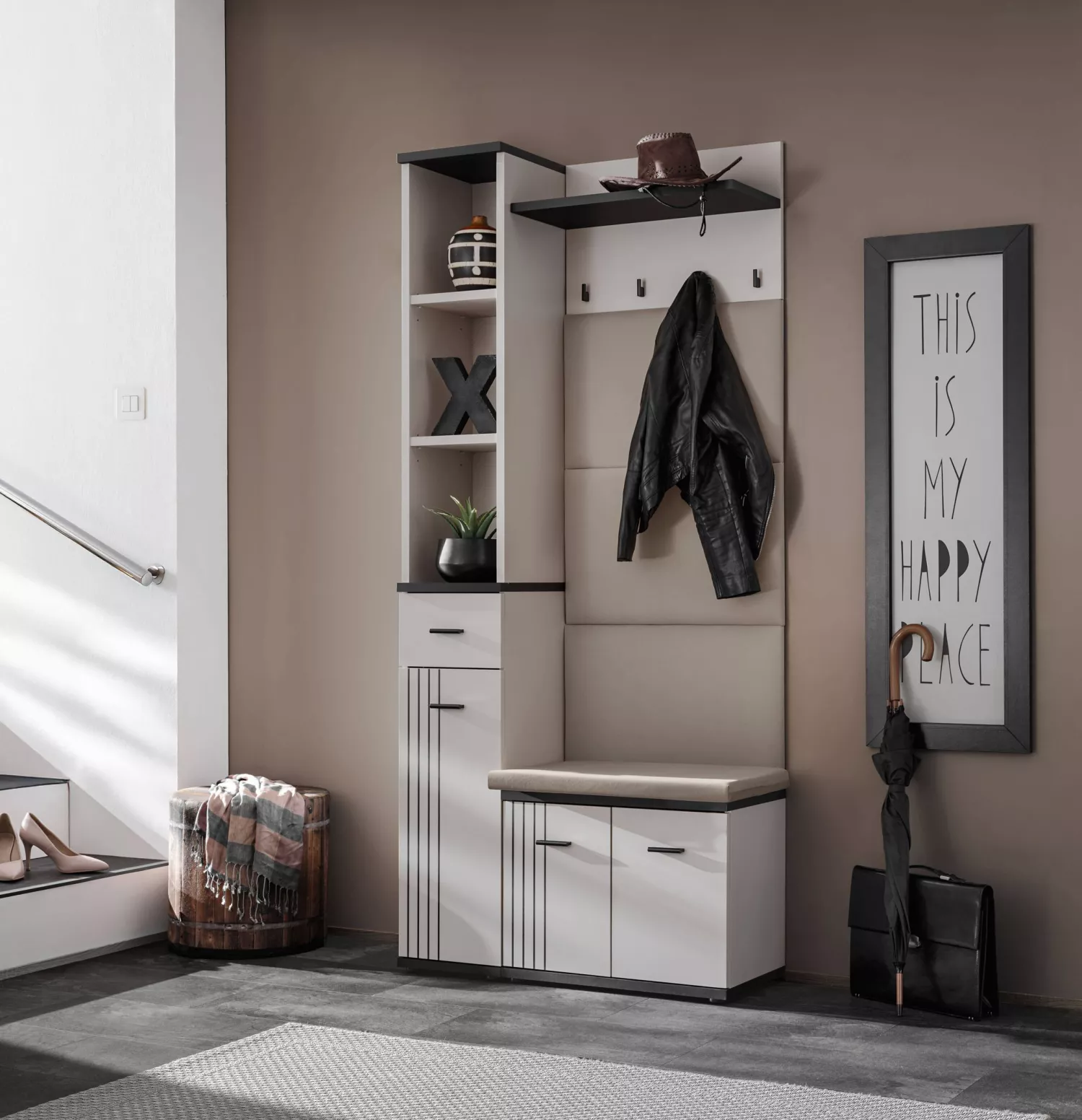 Stěna do předsíně PETUNIA 5 s podsedákem - kašmír / černá