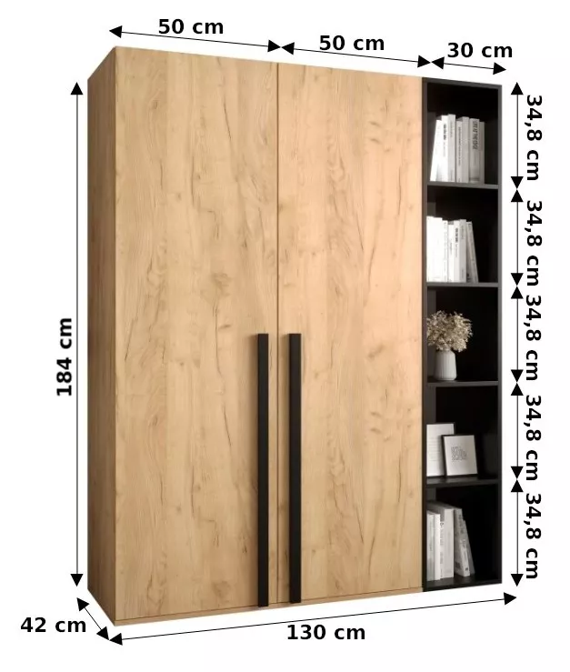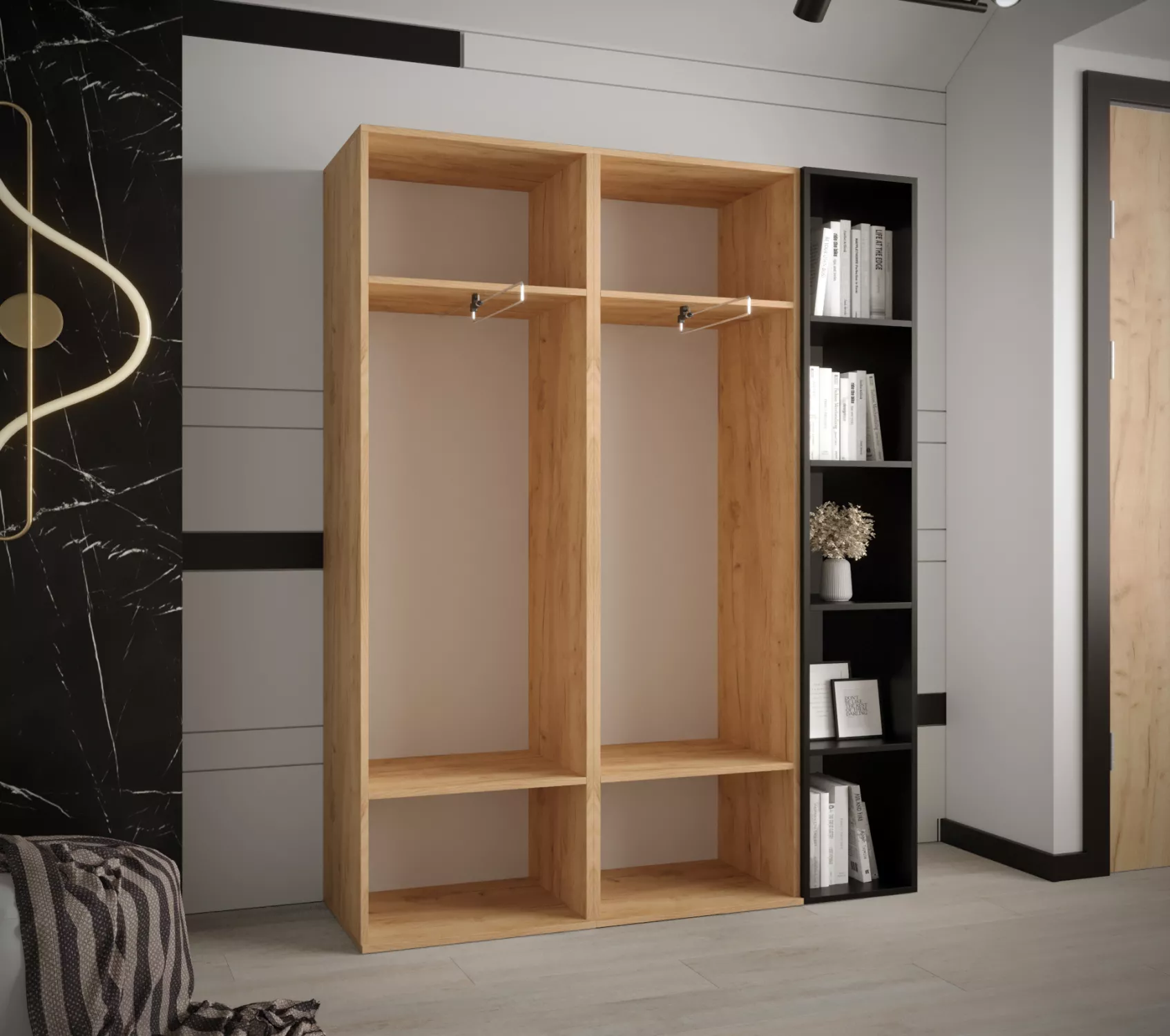 VÝPRODEJ - Skříně s regálem do předsíně HARRISON 2 - dub zlatý, černé
