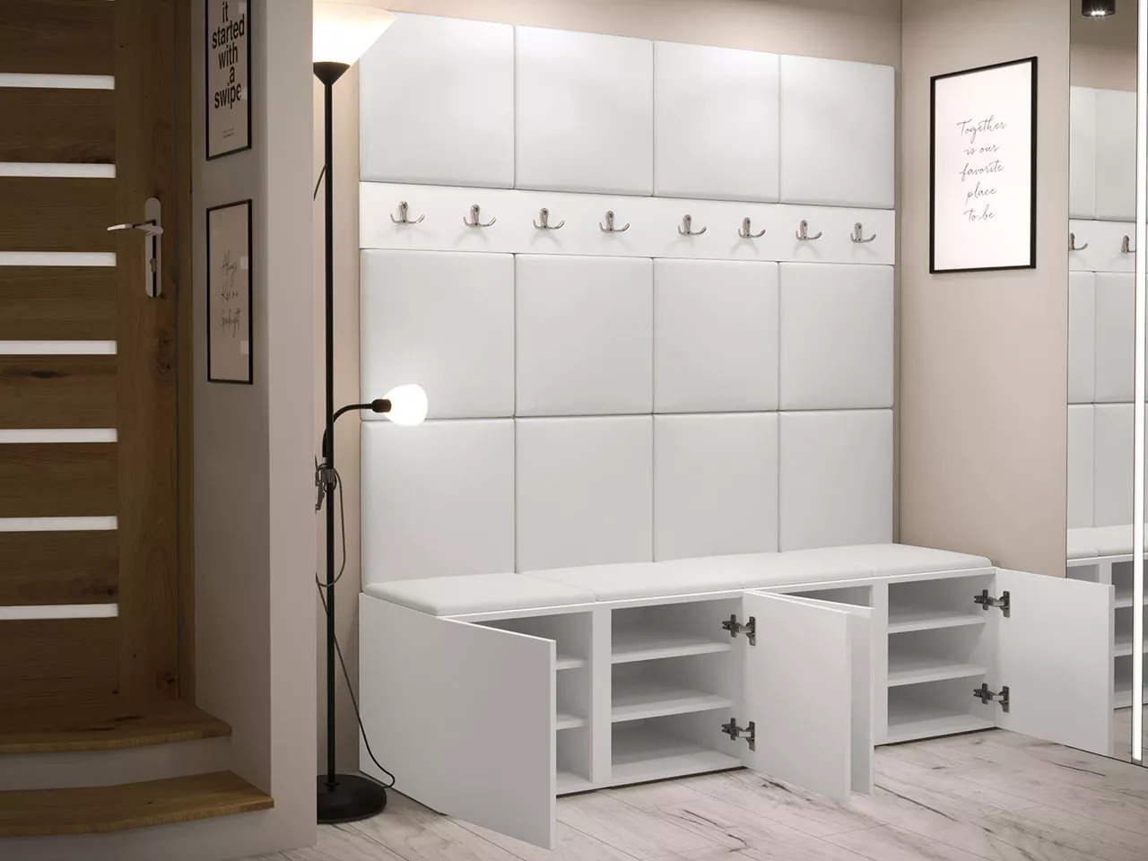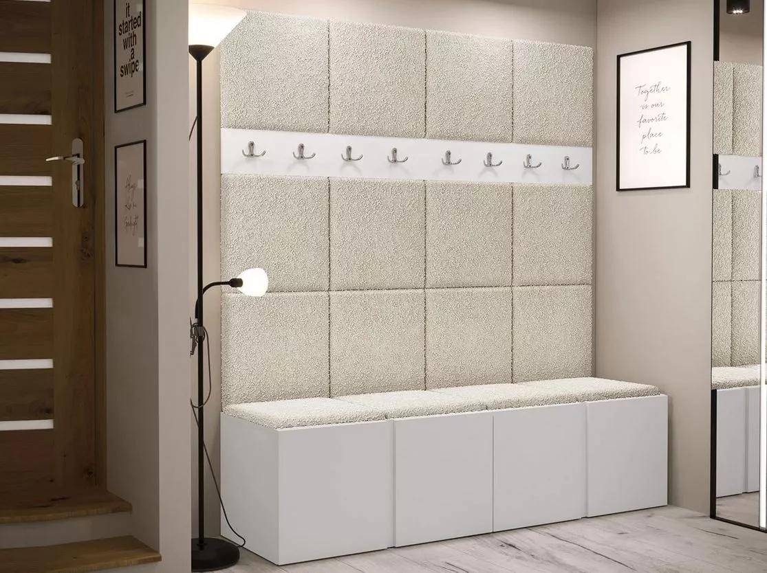 VÝPRODEJ - Stěna do předsíně s botníkem a panely 42x42 SELAND 6 - bílá / světlá béžová