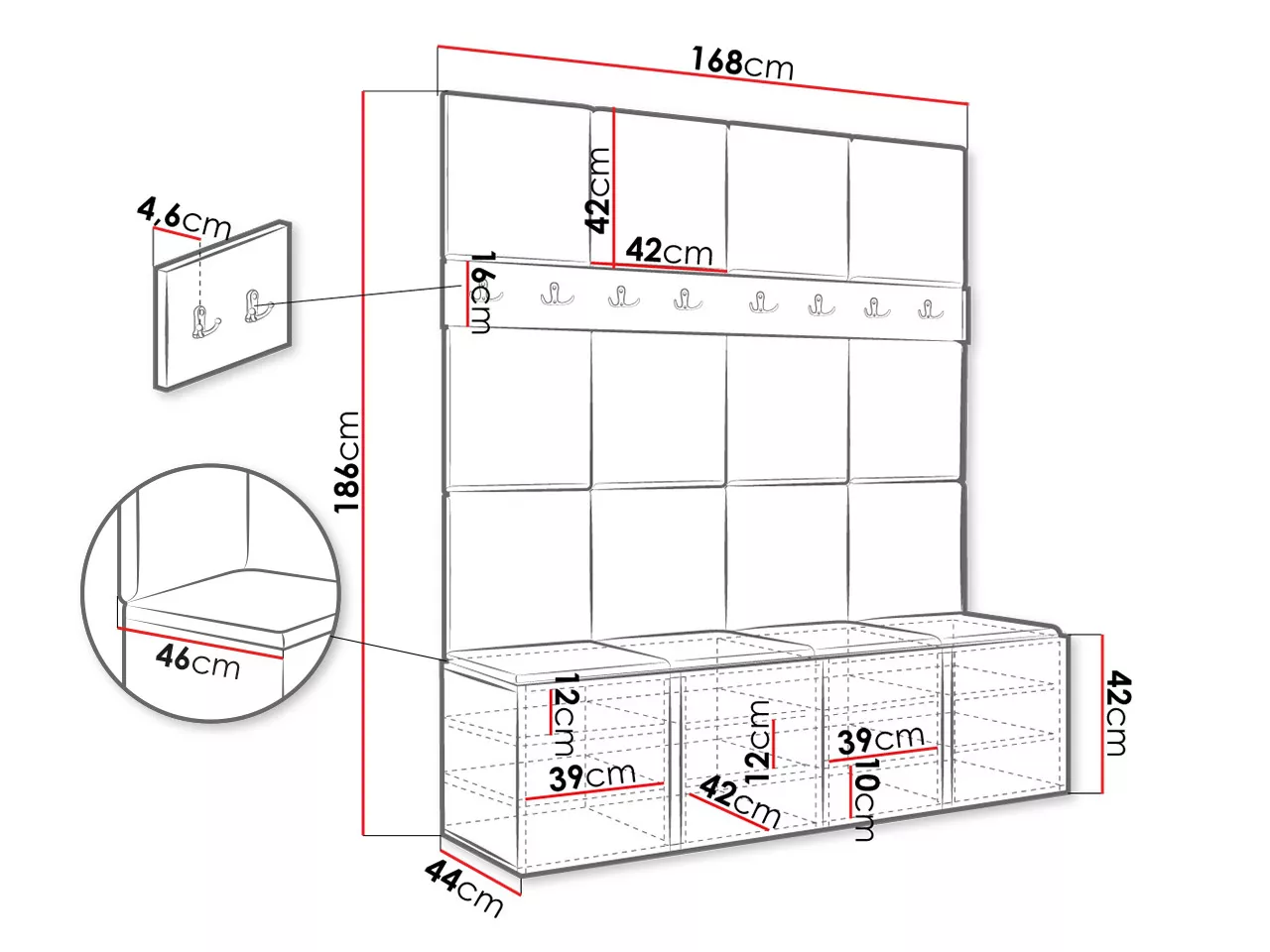 - 2x závěsný panel s věšáky: 84/16/4,6 cm