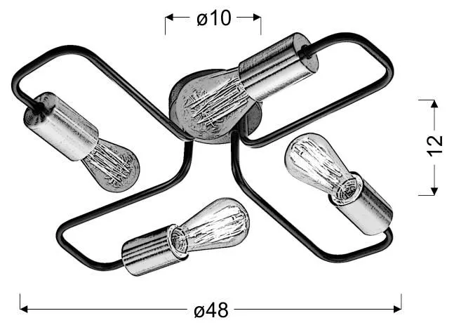 Retro přisazený čtyřramenný lustr HERPE - 4xE27, 60W, černý / měděný